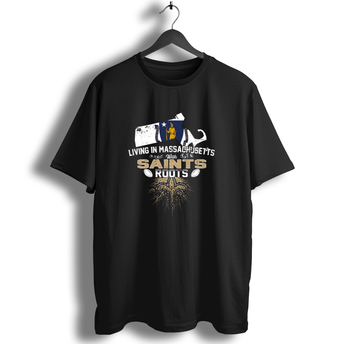 Celebrate your passion for Massachusetts and football with our Living In Massachusetts With Saints Roots Fleur De Lis T-Shirt! This fan-made design is perfect for die-hard fans who want to showcase their love for the Saints while enjoying casual outings or themed events. Made for comfort and style, this t-shirt is a must-have addition to your wardrobe, easily pairing with your favorite jeans or shorts for a laid-back, sporty look.