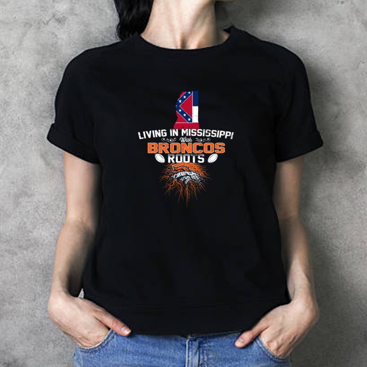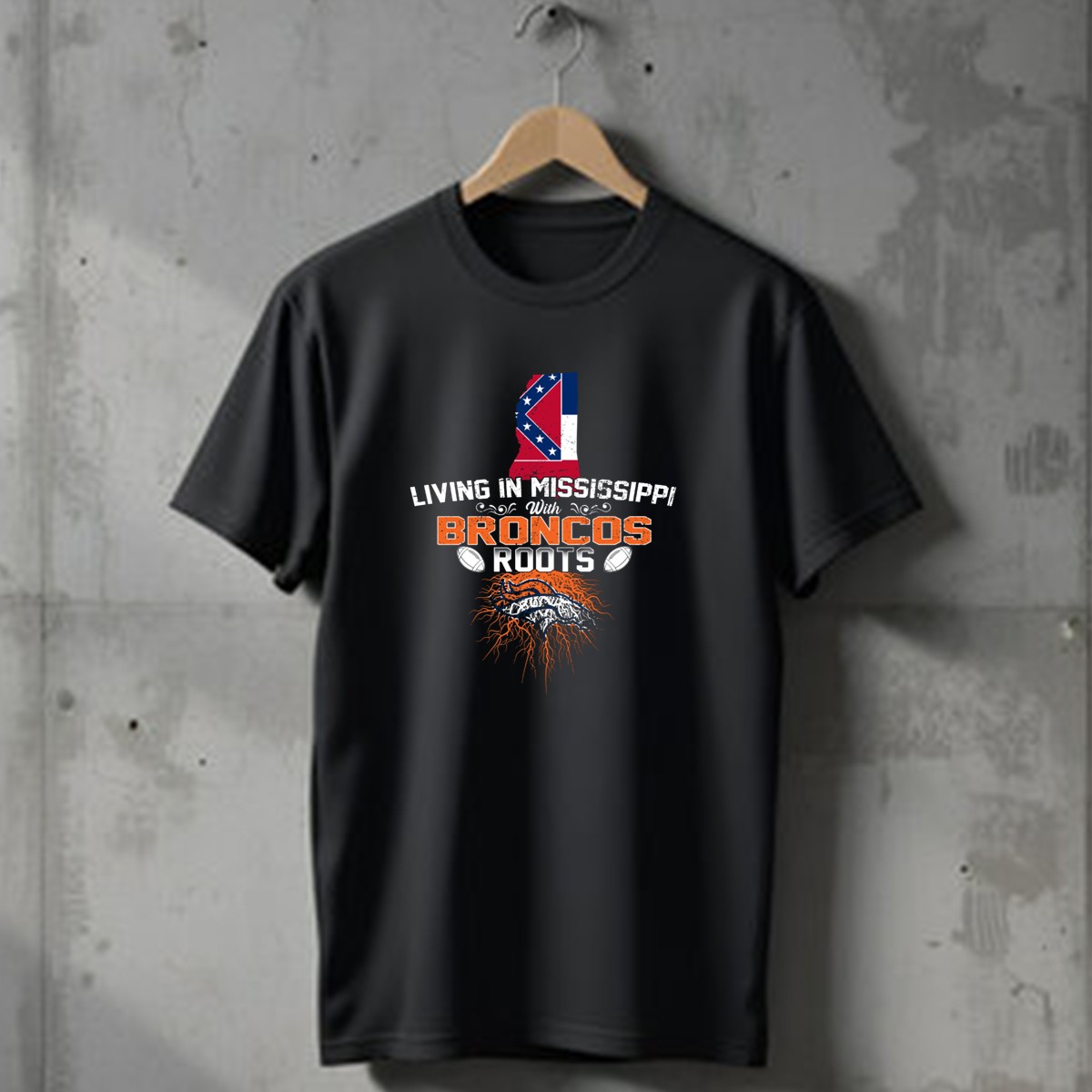 Living in Mississippi with Denver Broncos Roots and State Pride T-Shirt