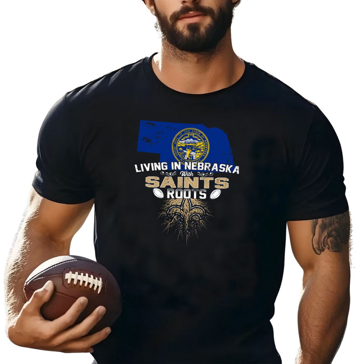 Celebrate your love for Nebraska and your New Orleans Saints roots with this unique graphic printed T-shirt! Perfect for die-hard fans and those who embrace their heritage, this shirt features a stylish fleur-de-lis and football design combined with the Nebraska state flag. Whether you’re at a casual gathering, themed events, or just enjoying daily wear, this T-shirt is a great way to show off your pride and make a statement.