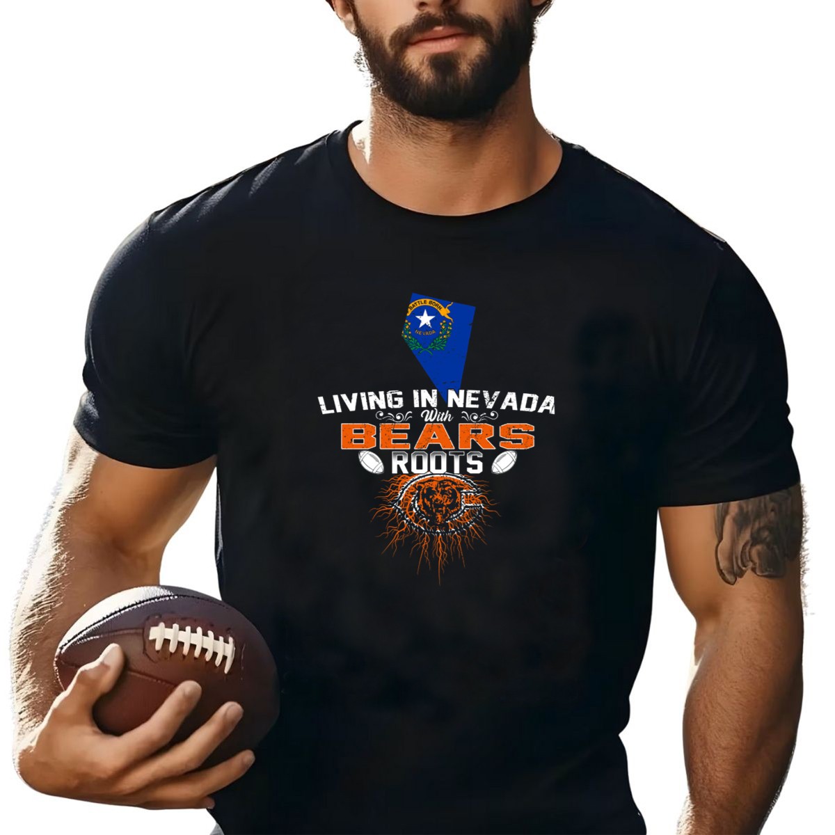 Show your pride for your Chicago Bears roots while embracing the Nevada lifestyle with our Living In Nevada With Chicago Bears Football Roots T-Shirt! This fan-made design is perfect for any die-hard Bears fan who wants to represent their team in a fun and casual way. Whether you’re heading to a game, a themed event, or just enjoying a day out, this shirt is the perfect addition to your wardrobe.