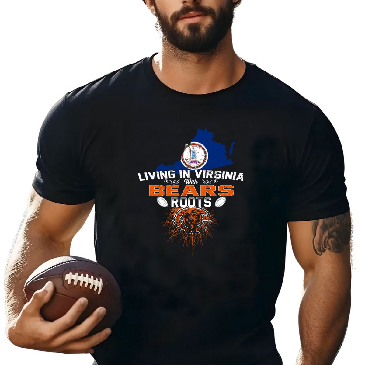 Living In Virginia With Chicago Bears Roots And Logo Elements T Shirt