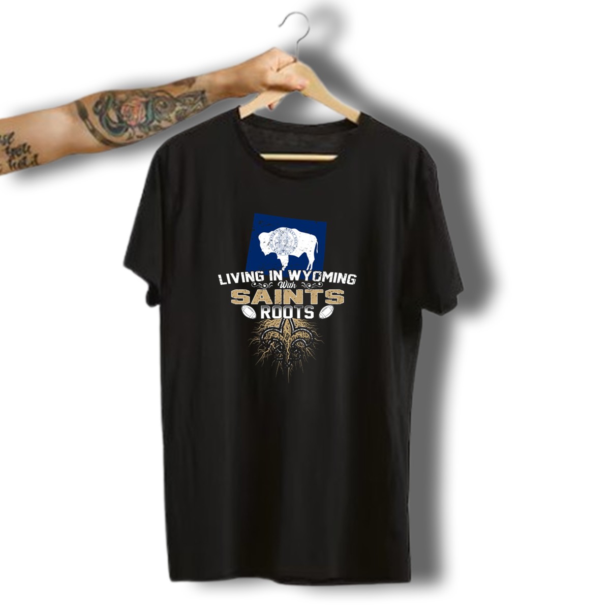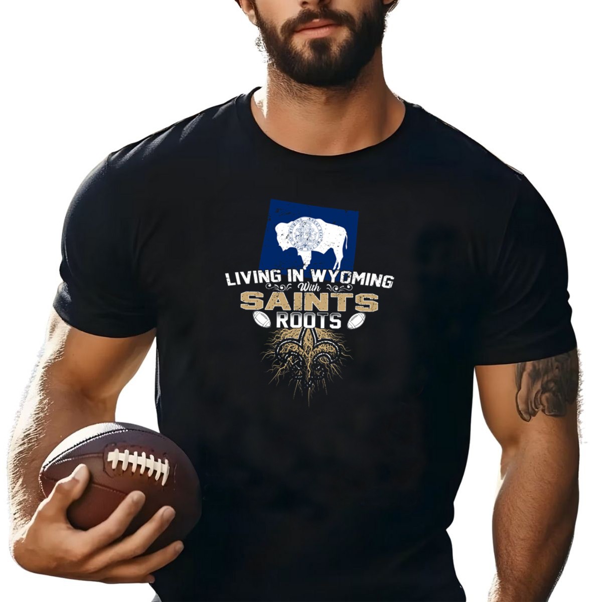 Celebrate your love for football and the great outdoors with our Living In Wyoming With Saints Roots Fleur De Lis T-Shirt! Perfect for fans of all ages, this unique graphic tee combines your passion for the game with a touch of local pride. Whether you’re cheering from the stands, enjoying a casual day out, or attending themed events, this shirt is designed to keep you comfortable and stylish all season long.