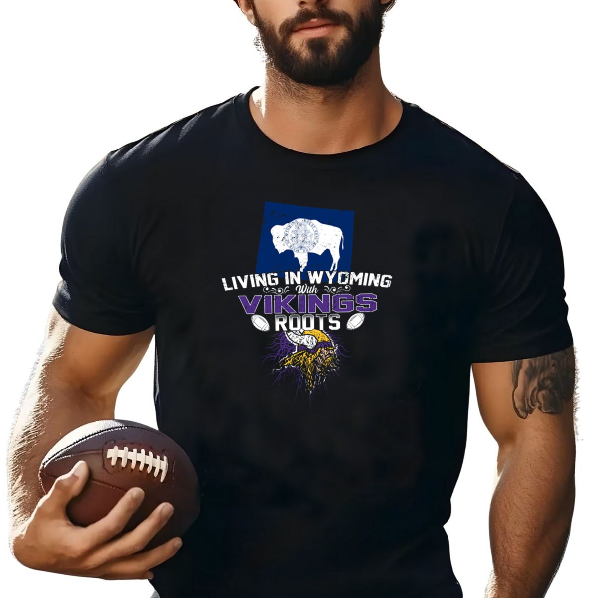 Embrace your adventurous spirit with our “Living In Wyoming With Viking Roots” T-shirt, featuring a striking buffalo and Norse helmet motif that celebrates both the rugged beauty of Wyoming and your fierce Viking heritage. Perfect for anyone who loves to express their unique style, this shirt is ideal for casual outings, themed events, or simply showcasing your roots in everyday life. With its fan-made design printed right here in the USA, this T-shirt combines comfort and culture seamlessly.