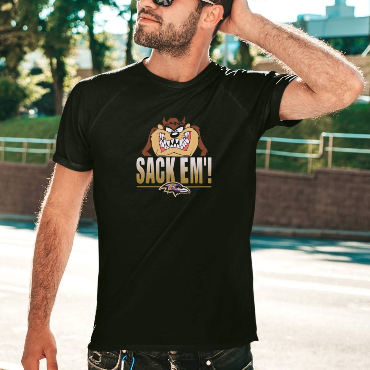 Celebrate your love for the Baltimore Ravens with our Looney Tunes Taz Sack Em T-Shirt! This fun and playful design features the iconic Taz character, making it perfect for die-hard fans of all ages. Ideal for casual outings, themed events, or just lounging at home, this shirt combines comfort and style, allowing you to showcase your team spirit wherever you go. Plus, it’s fan-made and proudly printed in the USA, making it a unique addition to your wardrobe!