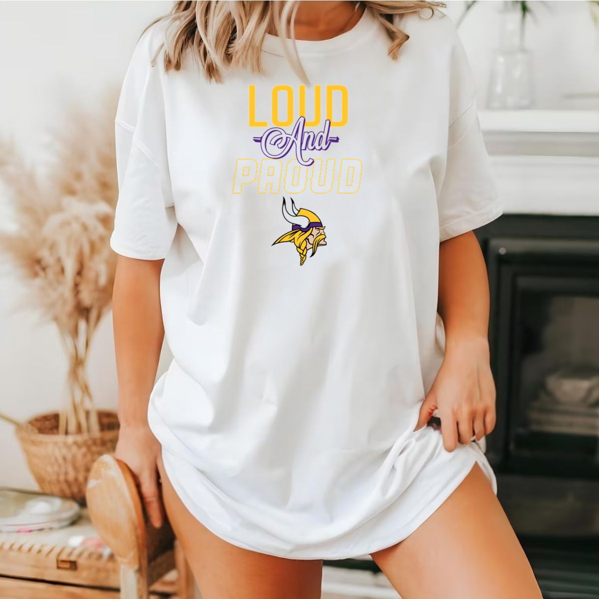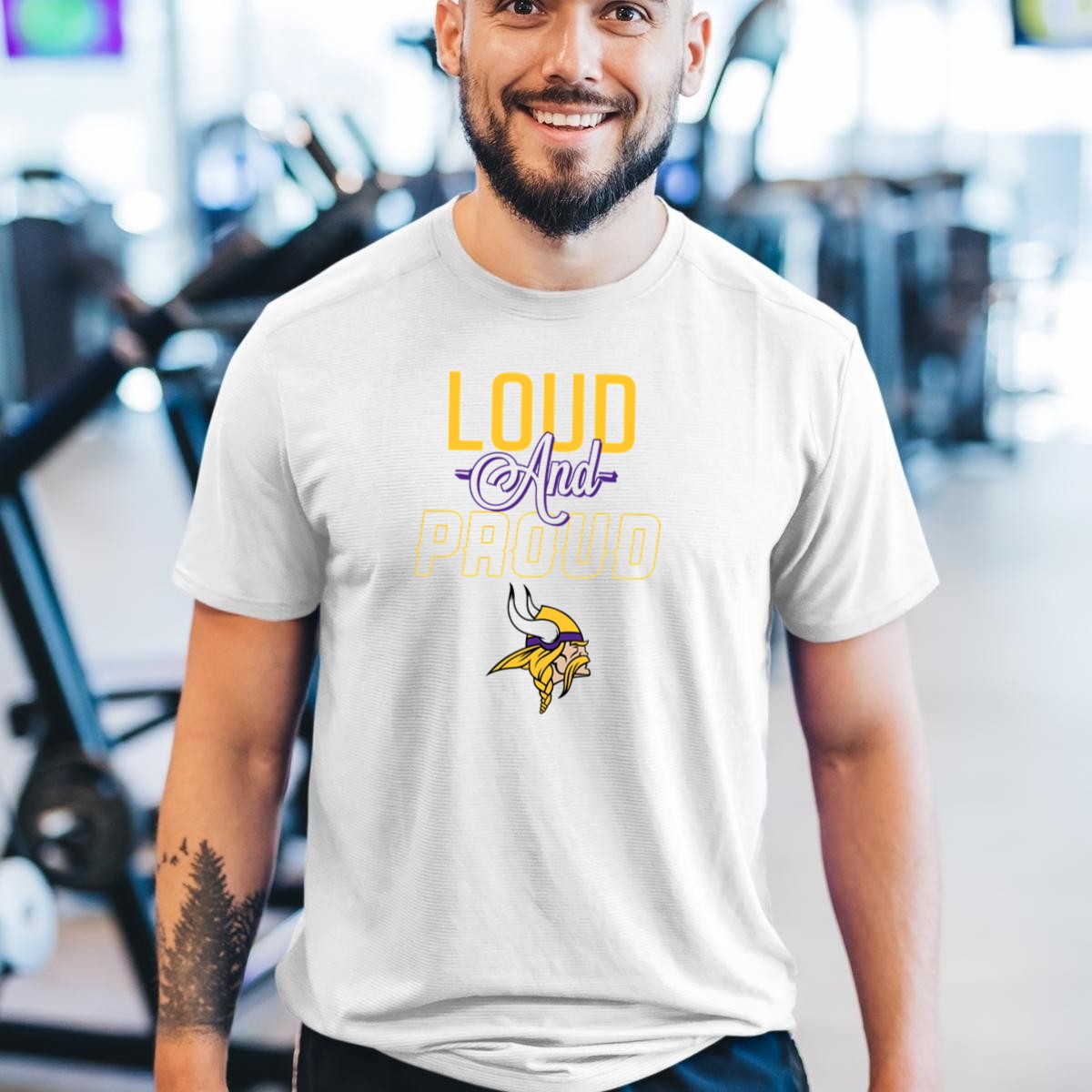 Show your unwavering support for the Minnesota Vikings with our Loud And Proud T-Shirt, perfect for die-hard fans and casual wearers alike. This fan-made design celebrates team spirit and is ideal for game days, themed events, or simply lounging around. Crafted for comfort and style, this tee ensures you stand out while cheering for your favorite team, making it a must-have for any Vikings enthusiast.