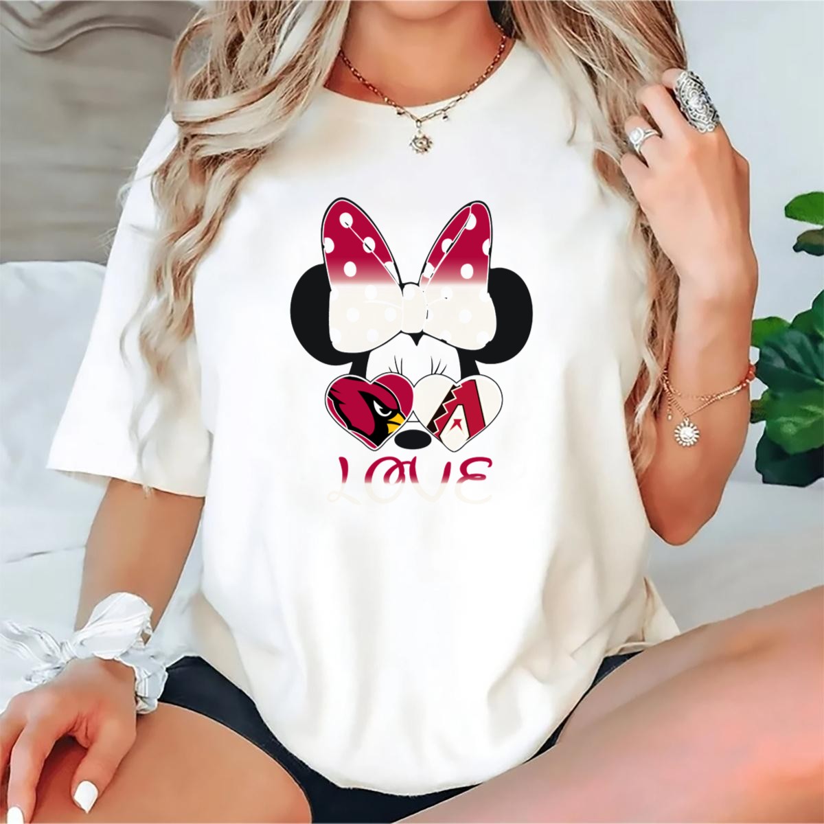 Love Arizona Cardinals Diamondbacks Minnie Bow Hearts T-Shirt