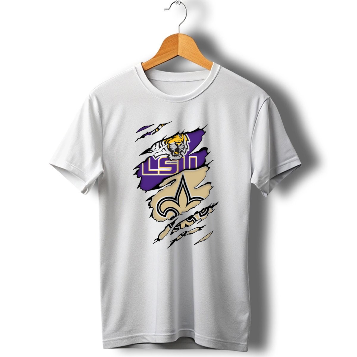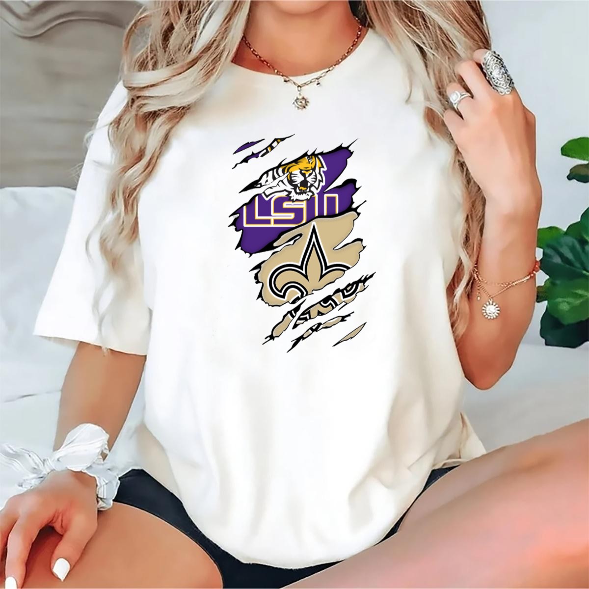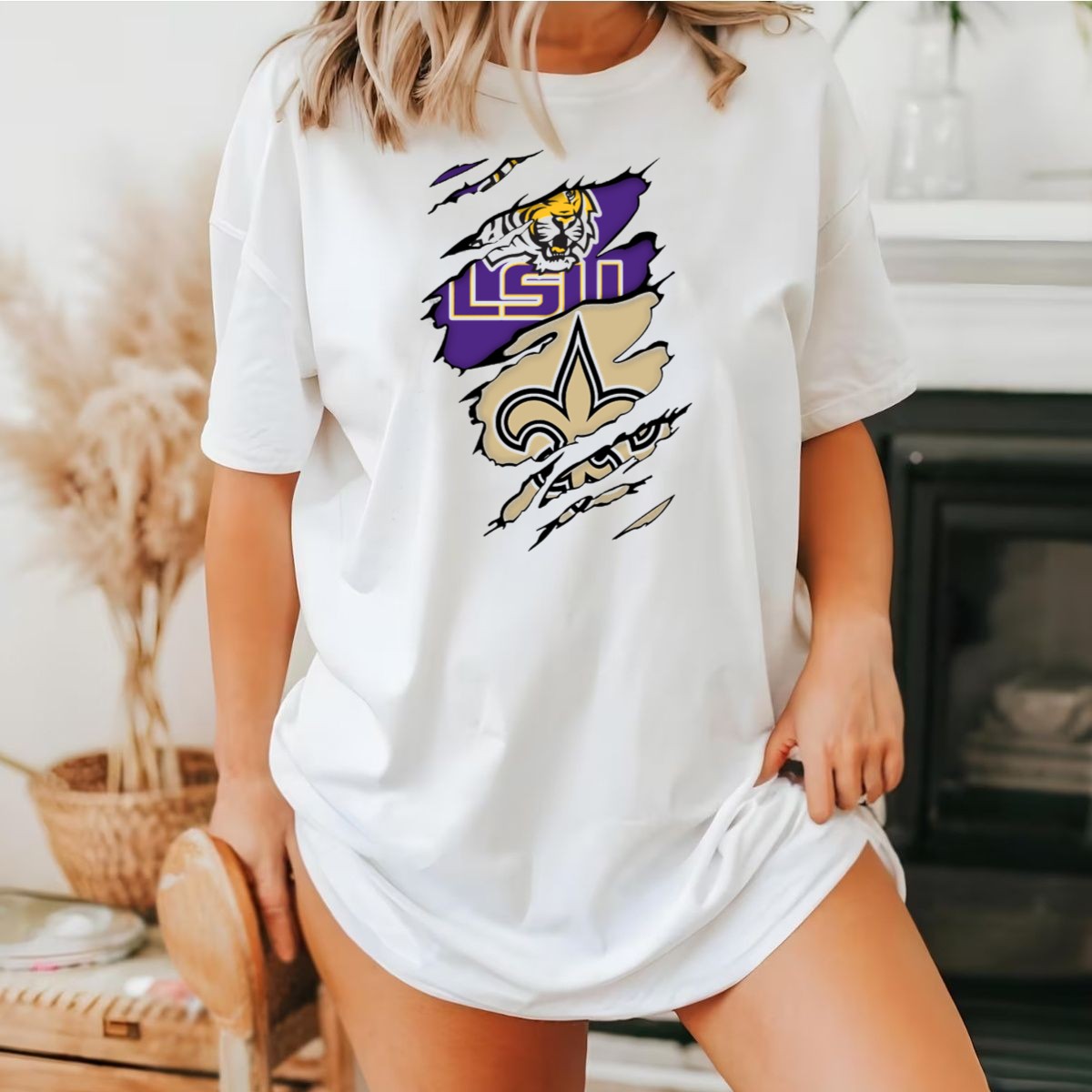 Lsu Tigers New Orleans Saints Fleur De Lis Torn T Shirt
