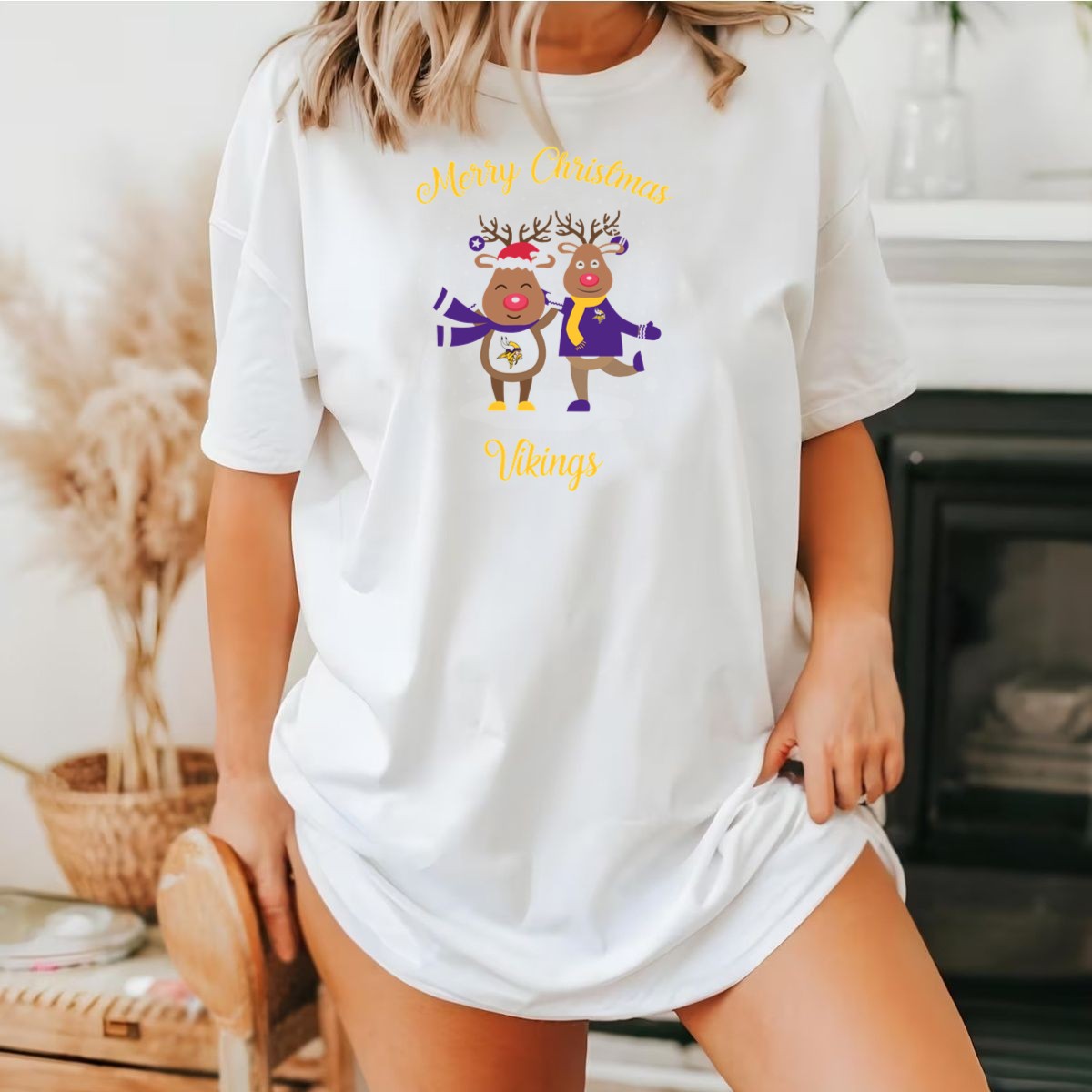 Celebrate the holiday season and your love for the Minnesota Vikings with our Merry Christmas Minnesota Vikings Reindeer Duo T-Shirt! This festive fan-made design is perfect for die-hard supporters looking to showcase their team spirit during casual outings, themed events, or daily wear. Crafted for comfort and style, this classic fit T-shirt will make you the life of the party while keeping you cozy all season long.