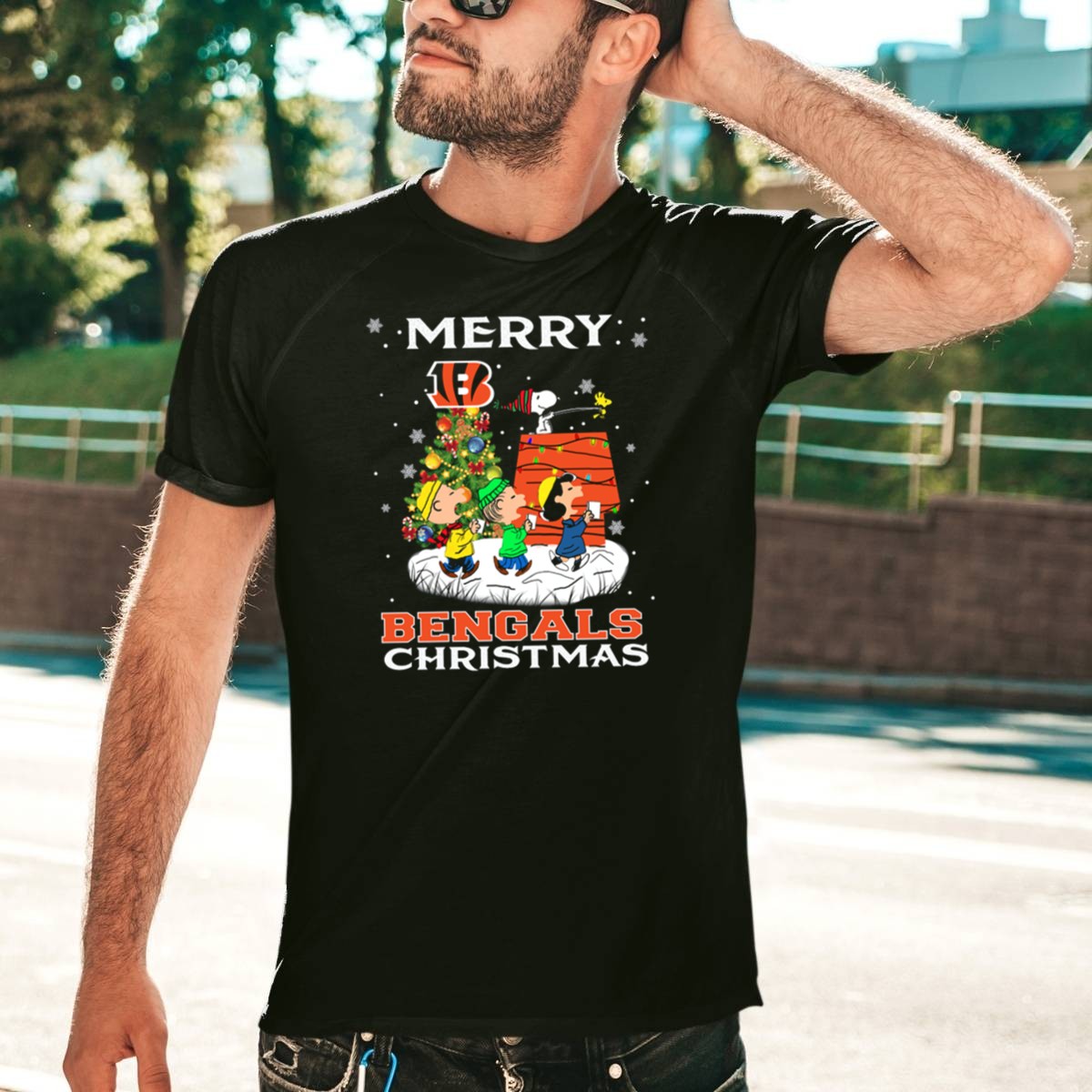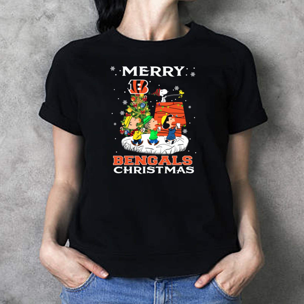 Celebrate the holiday season with our Merry Cincinnati Bengals Christmas T-Shirt featuring your favorite Peanuts characters! Perfect for true fans and casual wear alike, this shirt brings a playful twist to your festive outfit. Whether you’re heading to a game, a themed event, or just enjoying daily life, this unique fan-made design showcases your team spirit in style, making it a must-have for any Bengals enthusiast!