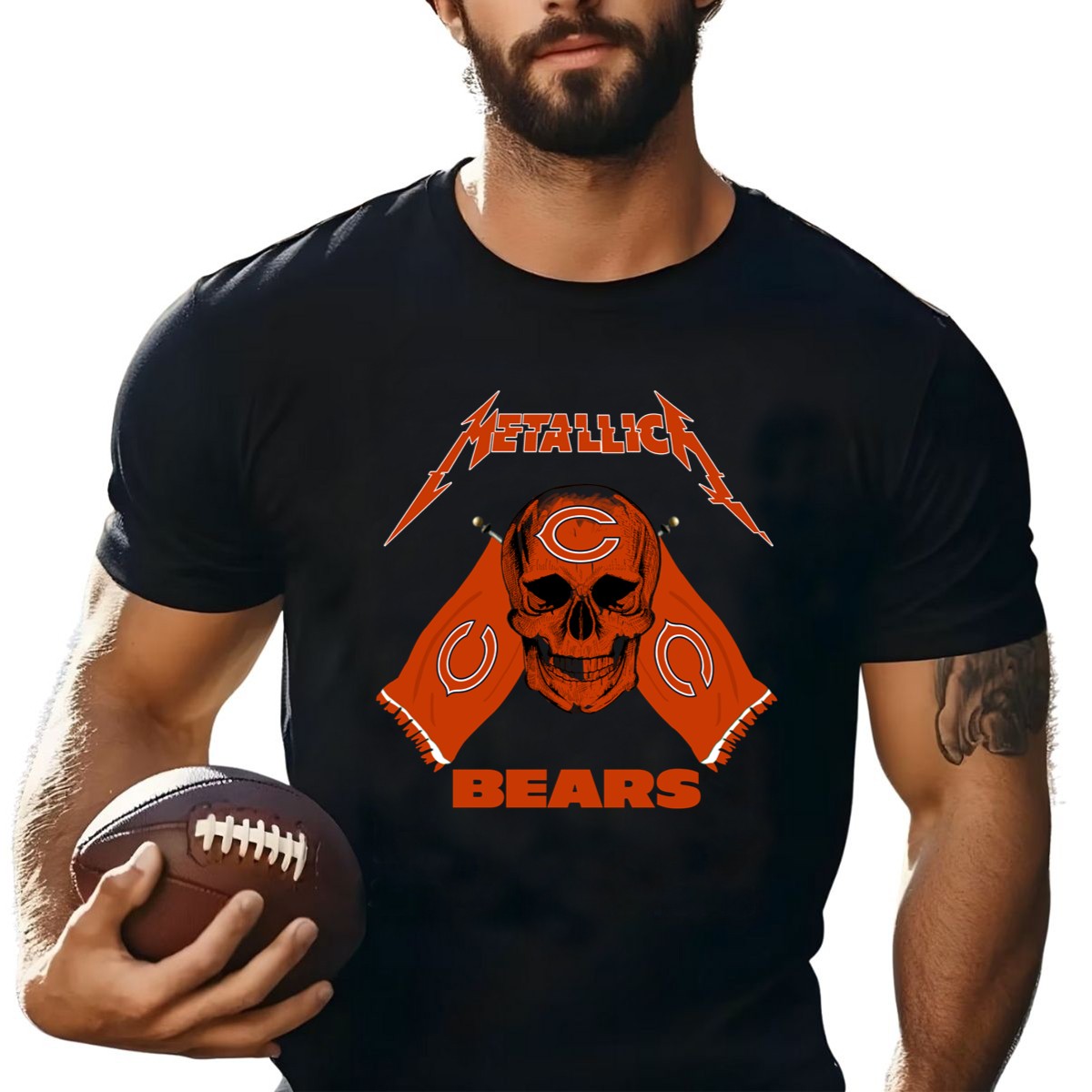 Show off your love for music and sports with our Metallica Chicago Bears Skull Flag Shirt! This unique fan-made design combines the iconic imagery of Metallica with the spirit of the Chicago Bears, making it the perfect statement piece for die-hard fans. Whether you’re cheering on your team at the game, attending a themed event, or just enjoying a casual day out, this shirt will make you stand out with its bold style. Printed in the USA, it’s not just a t-shirt; it’s a tribute to your passions!