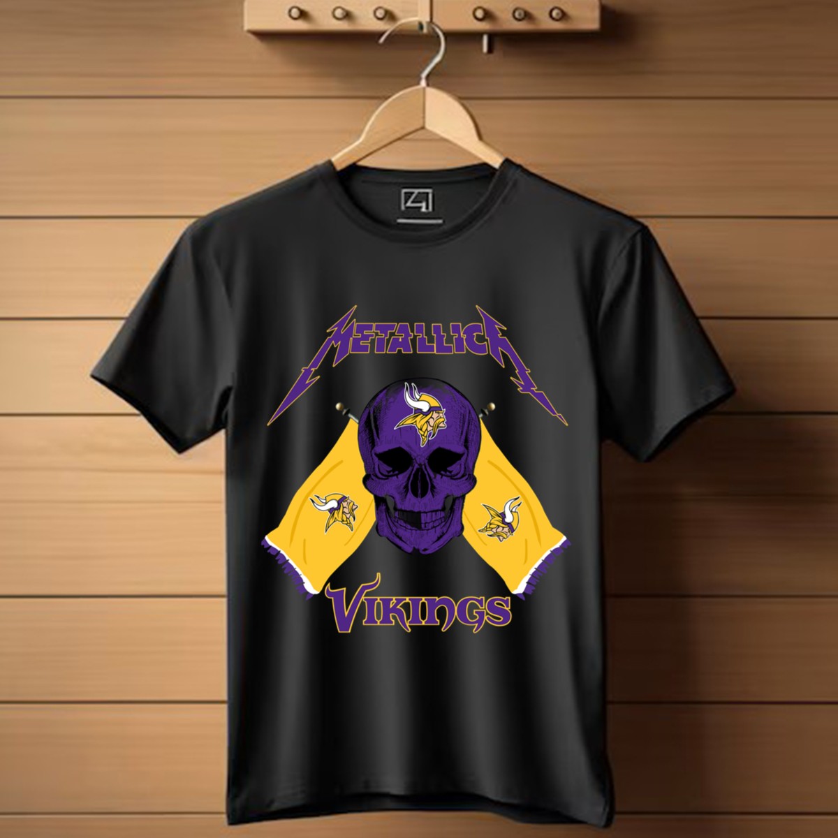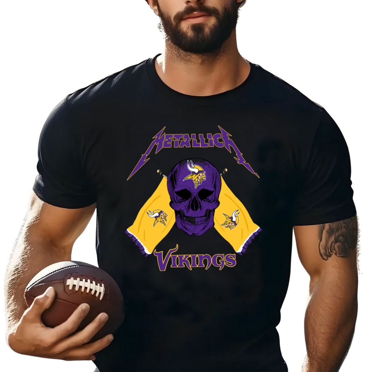 Show your love for heavy metal and your favorite football team with the Metallica Minnesota Vikings Skull Flag Shirt! This fan-made design combines the iconic Metallica imagery with the fierce spirit of the Minnesota Vikings, making it perfect for die-hard fans looking to stand out at casual gatherings, game days, or themed events. Made for comfort and style, this shirt is a must-have for anyone who wants to showcase their passion in a unique way.