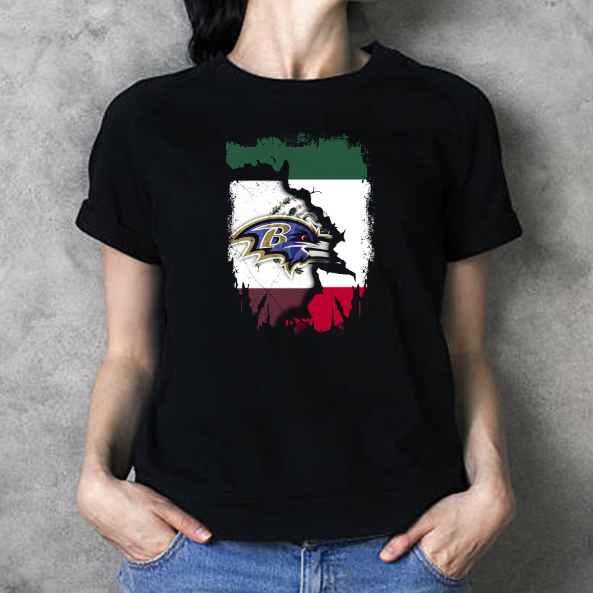 Mexico Flag Map with Baltimore Ravens T-Shirt