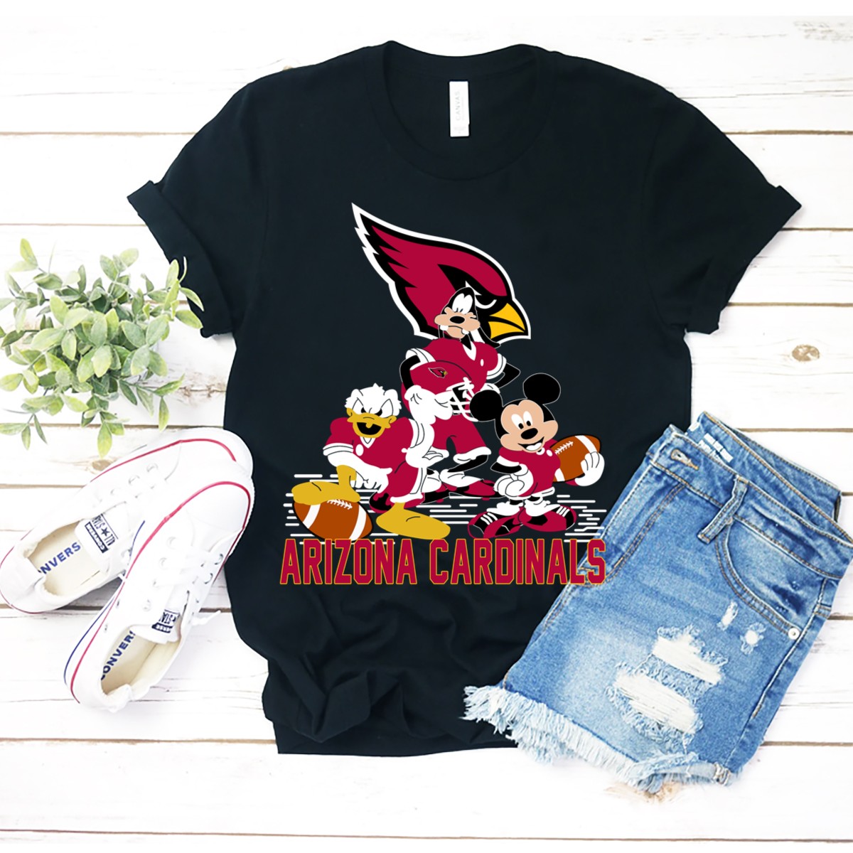 Show off your love for the Arizona Cardinals with our fun and vibrant Mickey, Donald, and Goofy graphic printed T-shirt! Perfect for fans of all ages, this shirt combines your favorite Disney characters with team spirit, making it an ideal choice for casual outings, themed events, and everyday wear. Crafted with comfort in mind, it’s not just a shirt; it’s a statement piece that brings joy and excitement to any occasion.