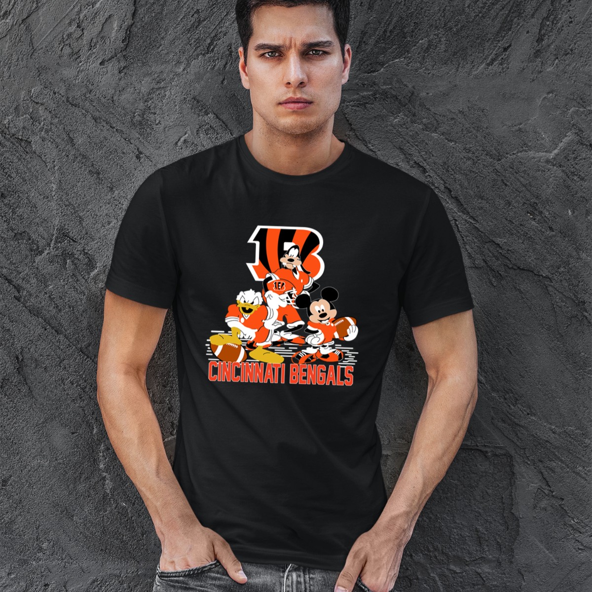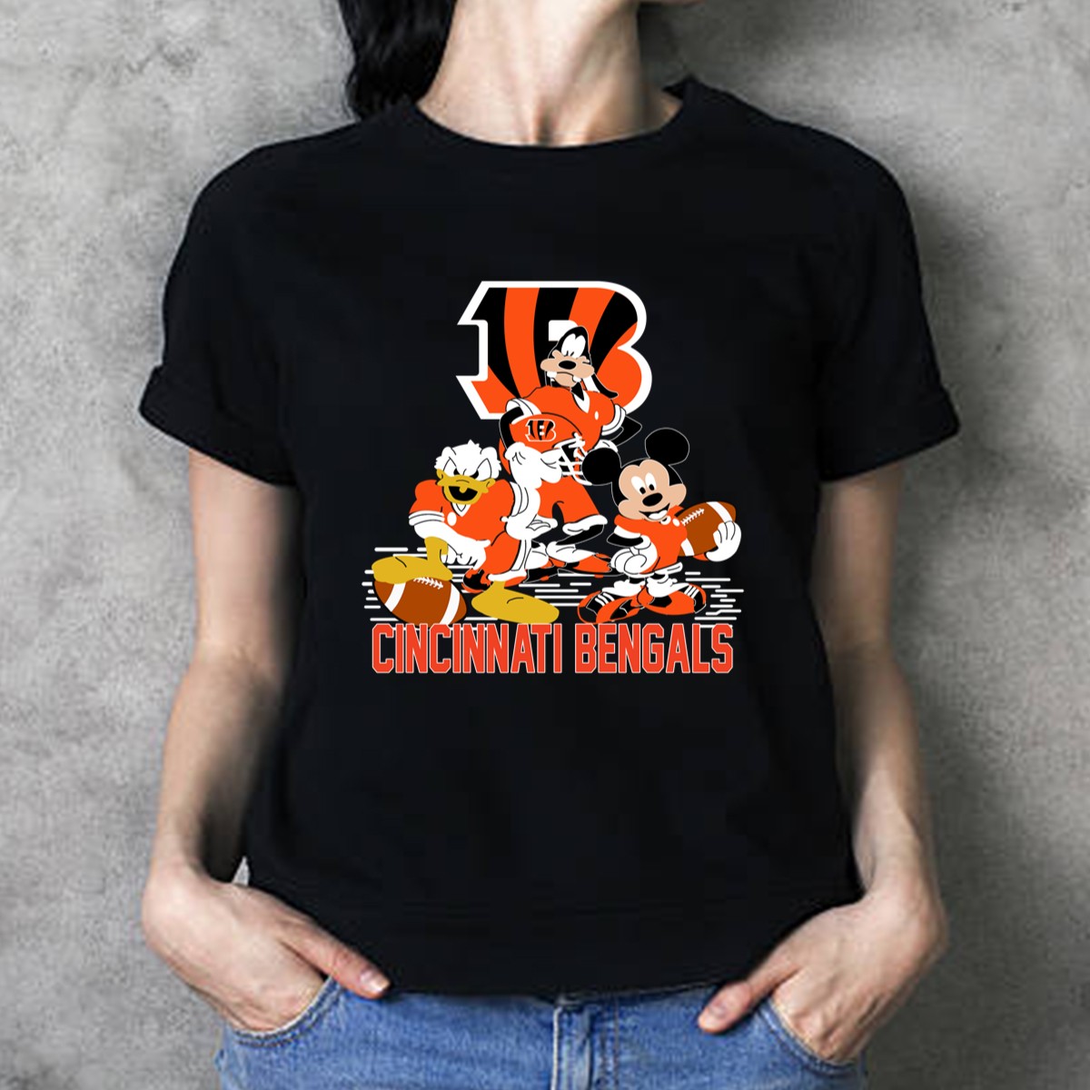 Show off your love for the Cincinnati Bengals in style with our Mickey, Donald, and Goofy T-shirt! Perfect for Disney fans and football enthusiasts alike, this fan-made design adds a fun twist to your casual wear. Ideal for game days, themed events, or simply lounging around, this T-shirt is a unique way to express your team spirit while celebrating your favorite characters. Made for comfort and durability, it’s the go-to choice for all-season wear.