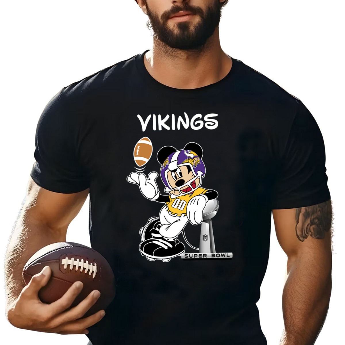 Show off your love for both Mickey Mouse and the Minnesota Vikings with this fun and stylish graphic printed T-shirt! Perfect for Disney fans and football enthusiasts alike, this shirt is ideal for casual outings, tailgating at games, or themed events. With its unique, fan-made design printed in the USA, you’ll stand out while showcasing your favorite characters and team pride in comfort.