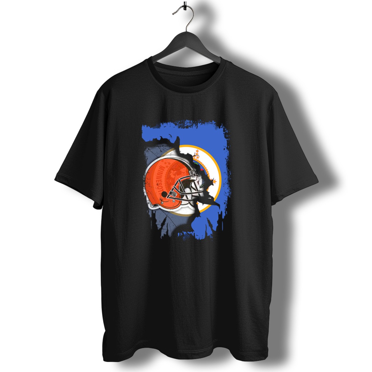 Minnesota State Flag with Cleveland Browns Helmet Blend T-Shirt