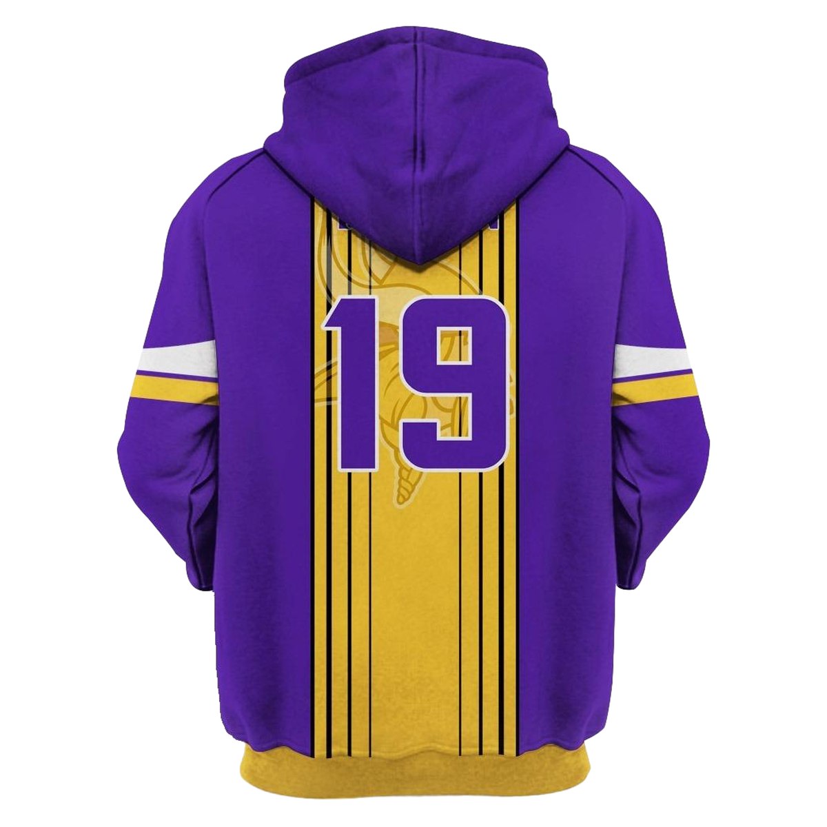Show your support for your favorite team with the Minnesota Vikings Adam Thielen 19 Jersey With Signature All-Over Print Hoodie. Perfect for fans of all ages, this hoodie is designed for casual outings, game days, or simply lounging at home. Its unique all-over print showcases your loyalty while providing a modern twist on a classic style.