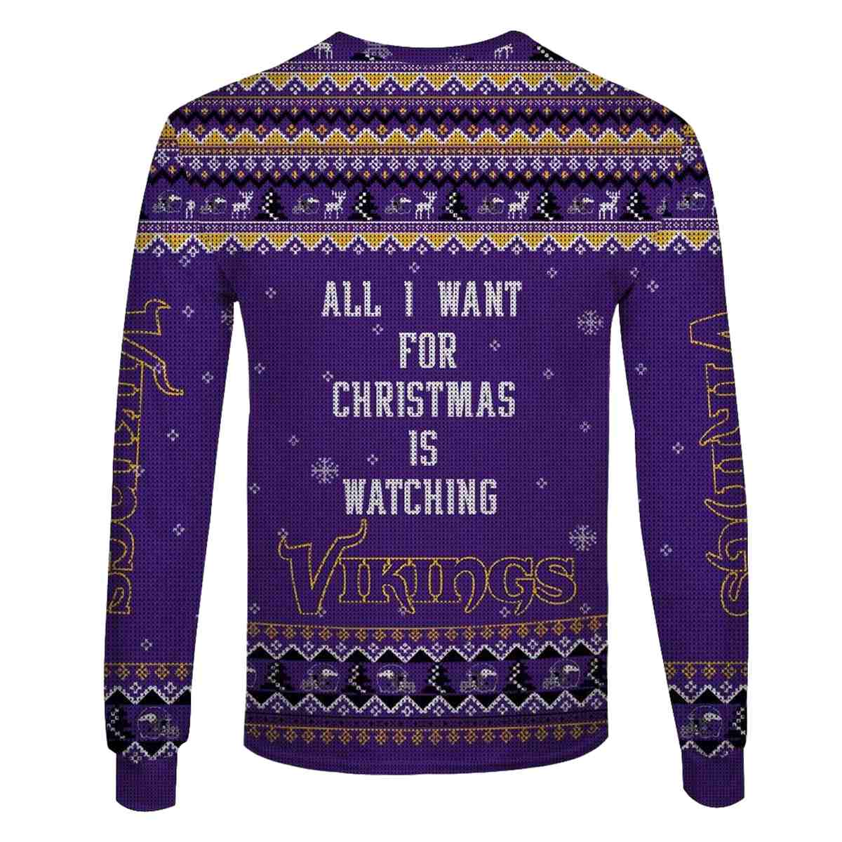 Get ready to rep your favorite team in style with the Minnesota Vikings “All I Want For Christmas Is Watching Vikings” All-Over Printed Sweatshirt. Perfect for die-hard fans, this cozy piece is ideal for game days, holiday gatherings, or simply lounging at home. Its unique design captures the spirit of both football and the festive season, making it a standout addition to any streetwear wardrobe.