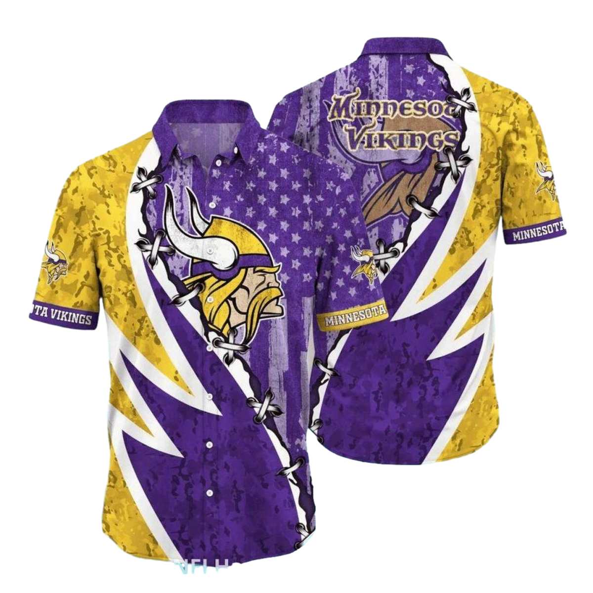 Minnesota Vikings American Flag Bold Design Hawaiian Shirt