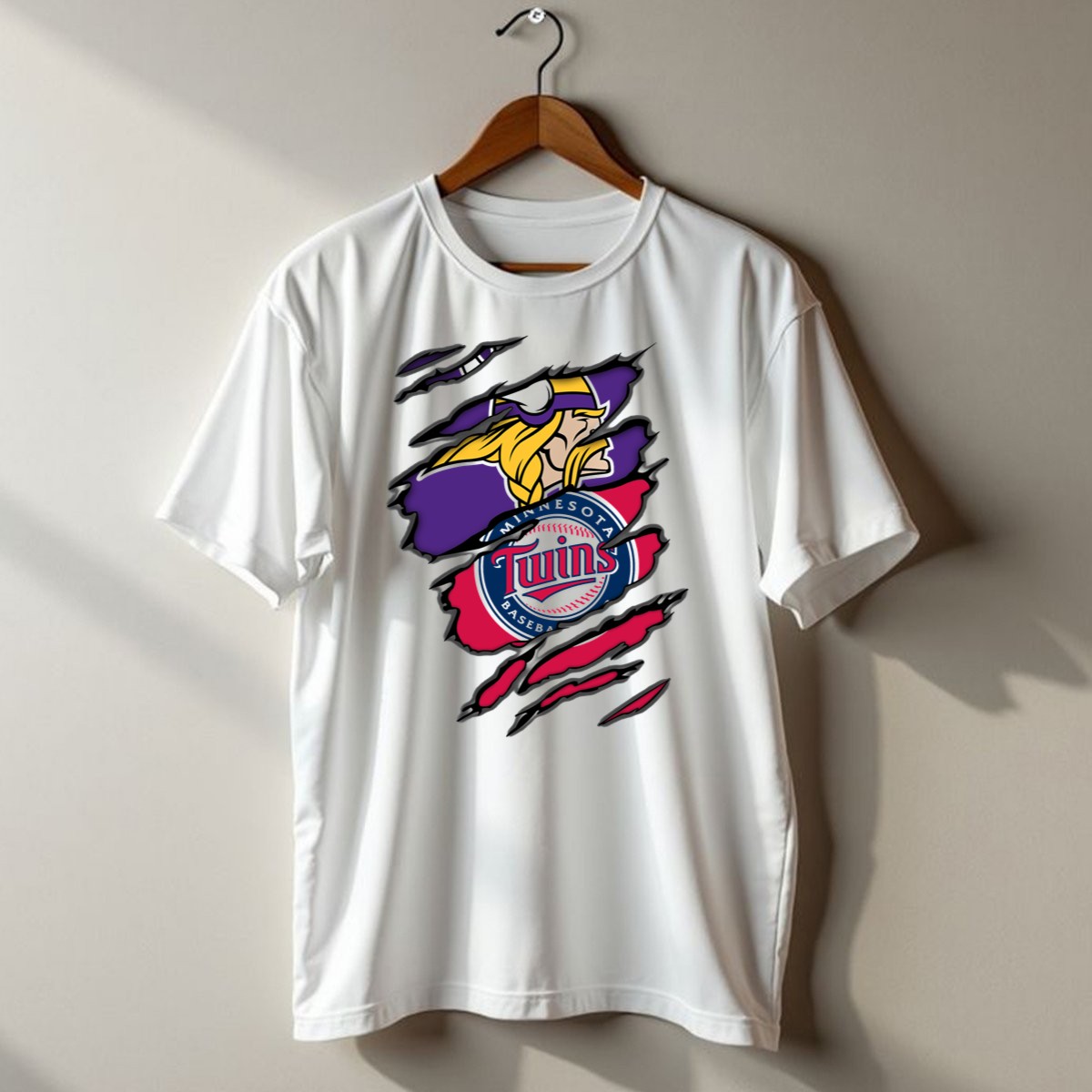Show your love for Minnesota sports with this unique fan-made T-shirt that perfectly fuses the spirit of the Vikings and Twins! Ideal for dedicated fans and casual wearers alike, this classic tee is perfect for game days, themed events, or just hanging out with friends. Made with care and printed in the USA, this shirt celebrates the passion of Minnesota sports in a comfortable and stylish way.