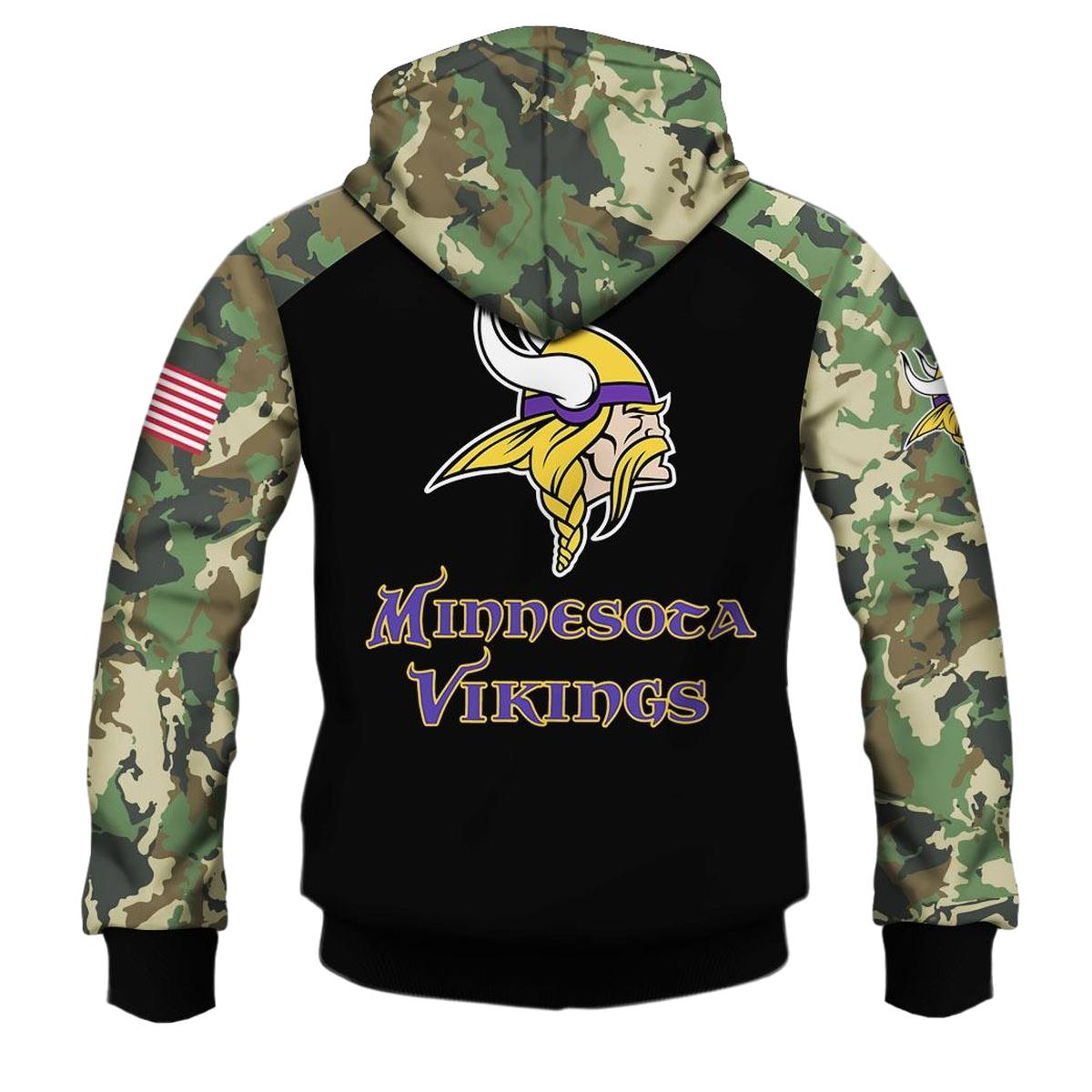 Minnesota Vikings Army Camouflage American Flag Punisher Skull AOP Hoodie