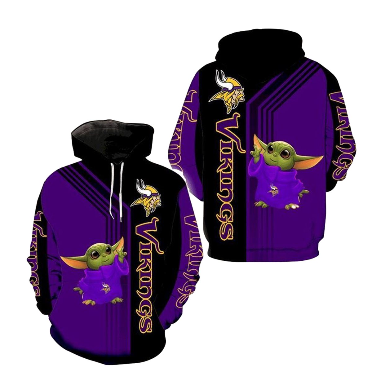 Introducing the Minnesota Vikings Baby Yoda Black And Purple AOP Hoodie, a must-have for fans who want to showcase their love for both the Vikings and the iconic Baby Yoda. Perfect for casual outings, game days, or cozy nights in, this hoodie blends fandom with comfort, making it a unique statement piece for any wardrobe.