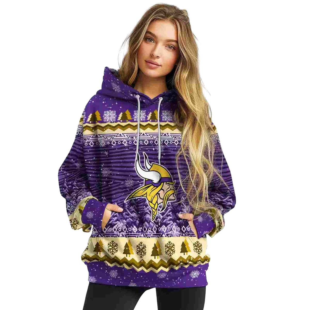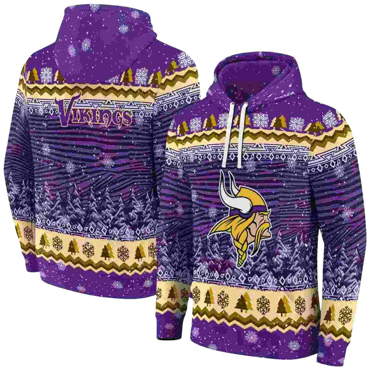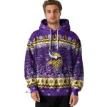 Celebrate the spirit of the season with our Minnesota Vikings Big Logo Christmas Trees Purple AOP Hoodie. This cozy and stylish pullover is perfect for die-hard fans looking to showcase their team pride during the winter months. Whether you’re heading to a game, enjoying a holiday gathering, or simply lounging around, this hoodie brings comfort and festive flair to any casual occasion.