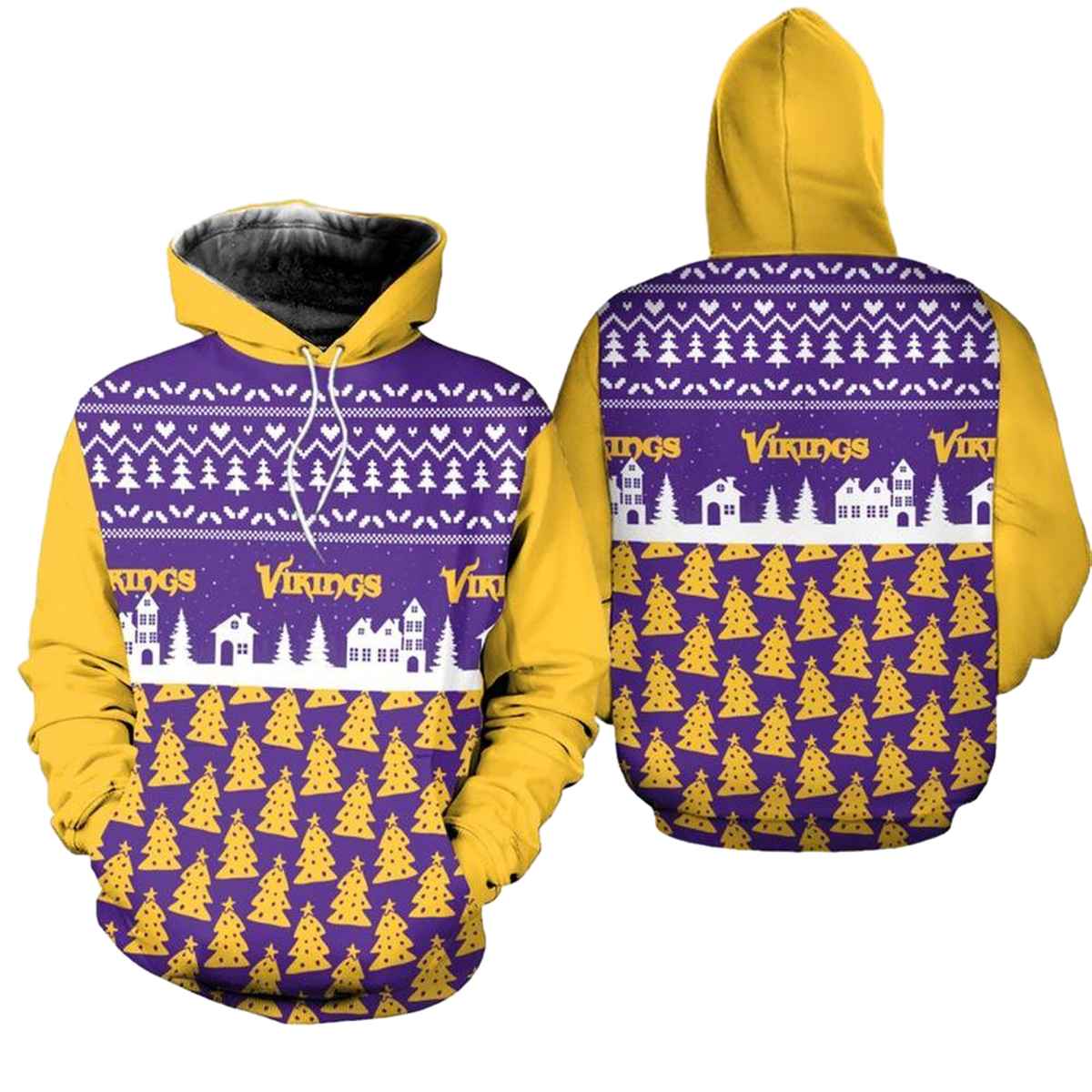 Minnesota Vikings Christmas Pattern PINE AOP Hoodie