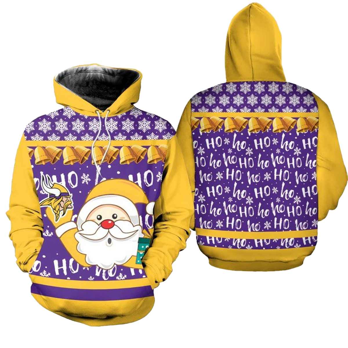 Embrace the holiday spirit with our Minnesota Vikings Christmas Santa Claus Ho Ho Ho AOP Hoodie, specially designed for fans who celebrate in style! Perfect for game days, cozy gatherings, or casual outings during the festive season, this unique hoodie showcases a vibrant all-over print that captures the joy and excitement of the holidays. It’s a must-have for anyone looking to spread cheer while supporting their favorite team!
