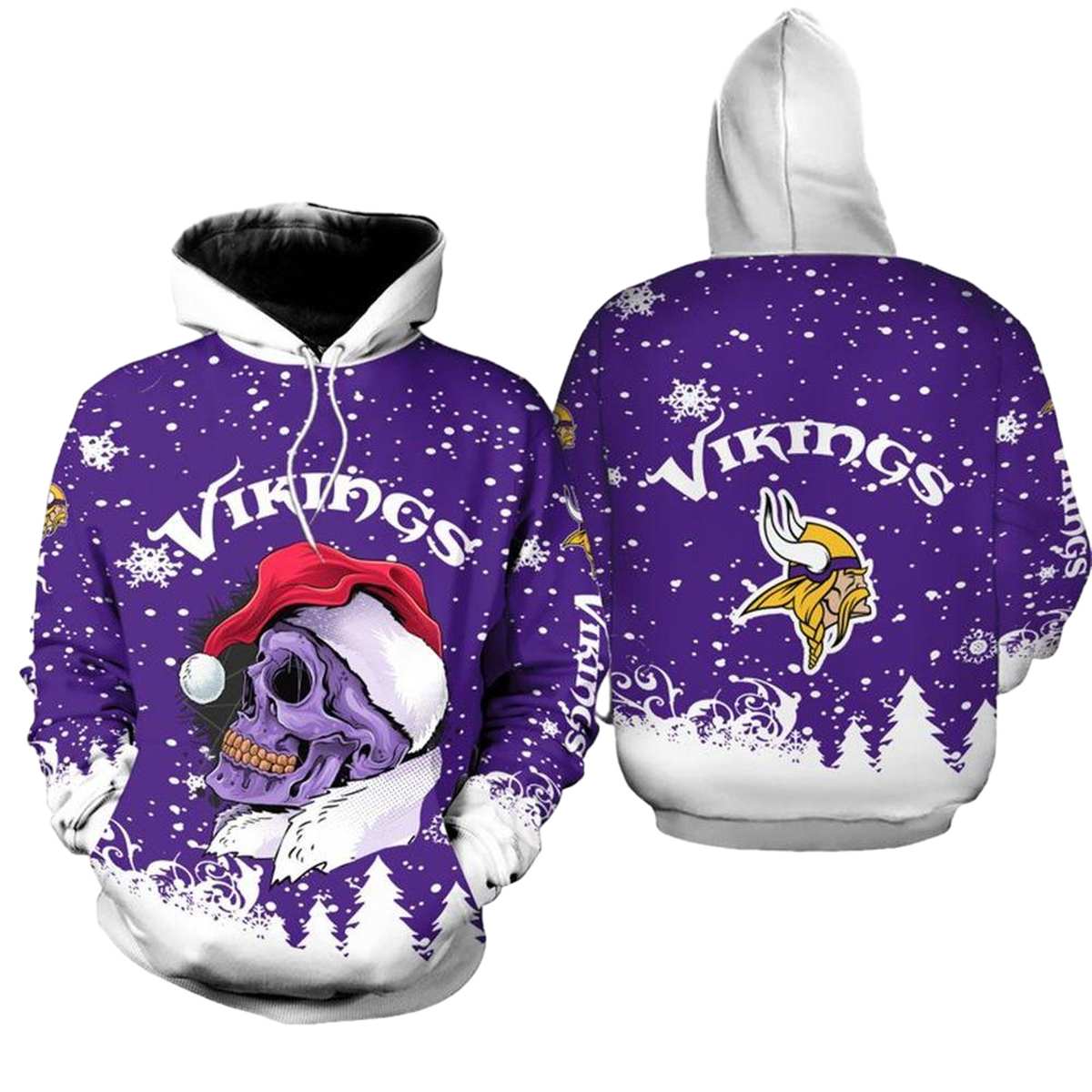 Embrace the festive spirit with our Minnesota Vikings Christmas Skull Claus All-Over Hoodie, designed for passionate fans who want to showcase their team pride in a fun and unique way. Perfect for casual outings, holiday gatherings, or cozy evenings at home, this hoodie combines style and comfort, making it a must-have for any Vikings supporter during the winter season.