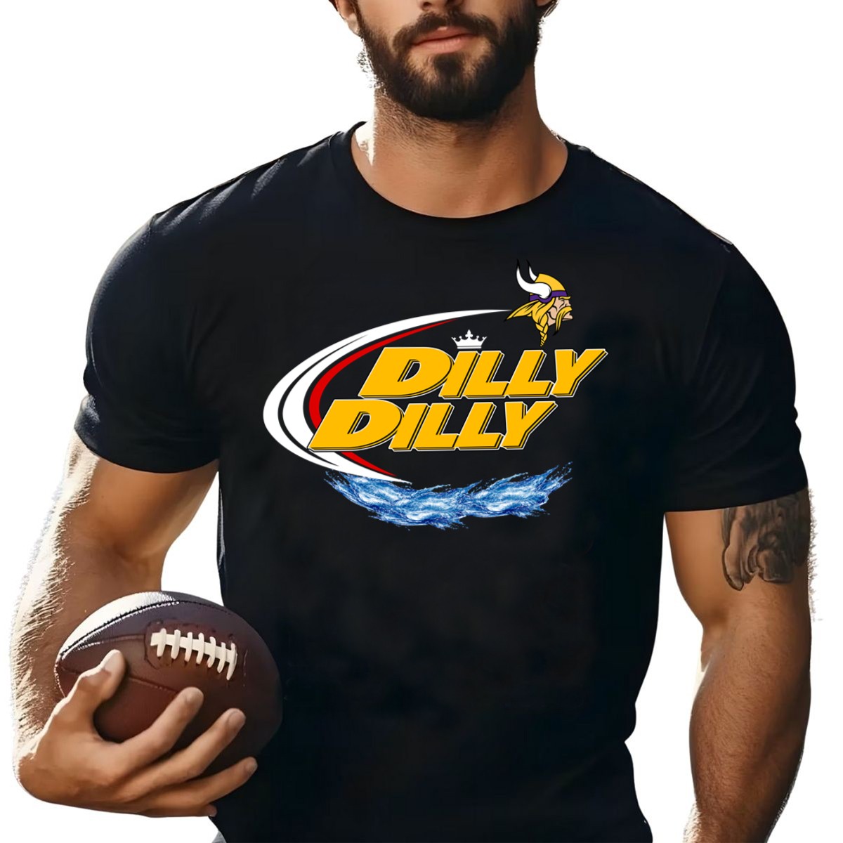 Show your team spirit with our Minnesota Vikings Dilly Dilly Bud Light T-shirt, designed for fans who love to celebrate in style! This comfy and stylish tee is perfect for game days, casual outings, or themed events. Featuring a fan-made design printed in the USA, this shirt allows you to express your loyalty while enjoying the soft, breathable fabric that keeps you comfortable all day long.