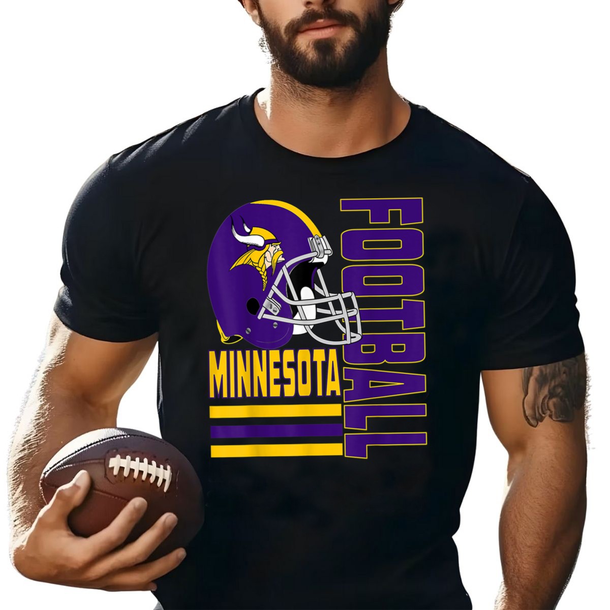 Show your unwavering support for the Minnesota Vikings with this fan-made graphic printed T-shirt. Designed for true fans, this shirt is perfect for game day, themed events, or just casual outings with friends. Made with a unique design that captures the spirit of the Vikings, it combines comfort and style, making it an essential addition to your wardrobe.