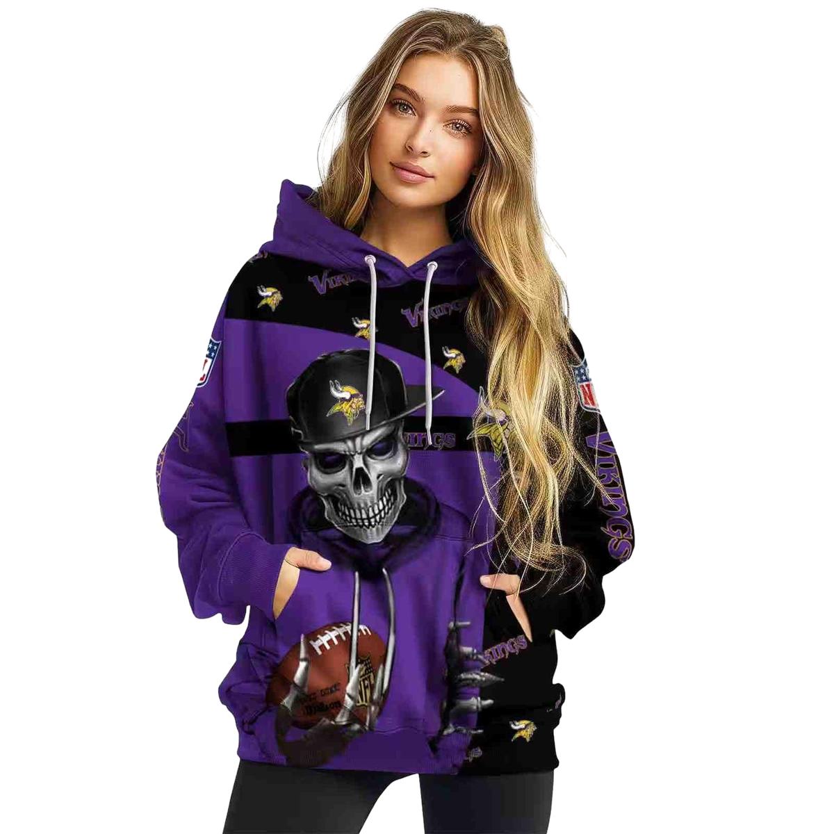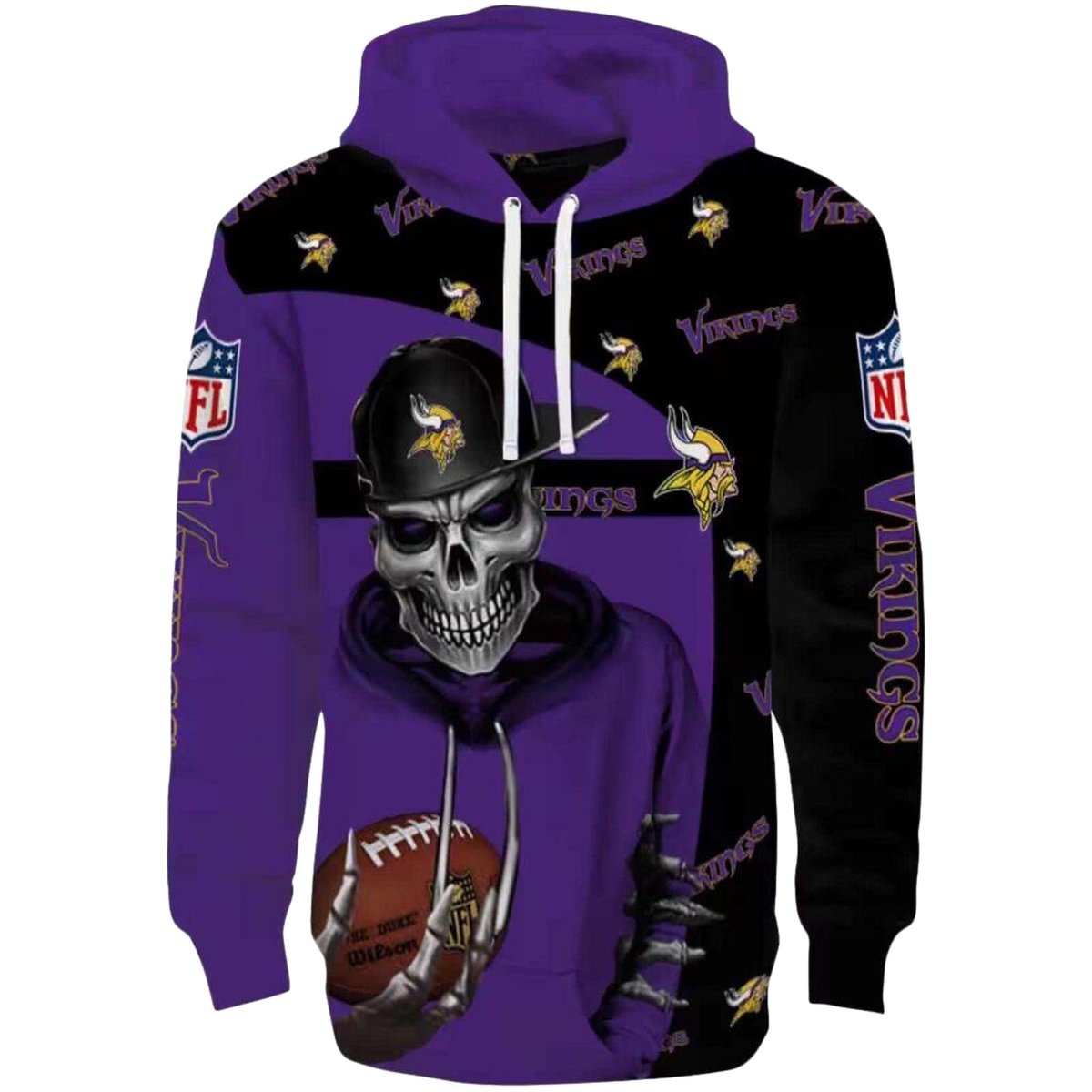 Embrace your team spirit with the Minnesota Vikings Grim Vibe With Hat Funny Purple Black All-Over Print Hoodie. Perfect for fans who enjoy a relaxed style, this unique hoodie is ideal for casual outings or cozy days indoors. Its playful design not only showcases your love for the Vikings but also offers a comfortable fit that’s perfect for both men and women.