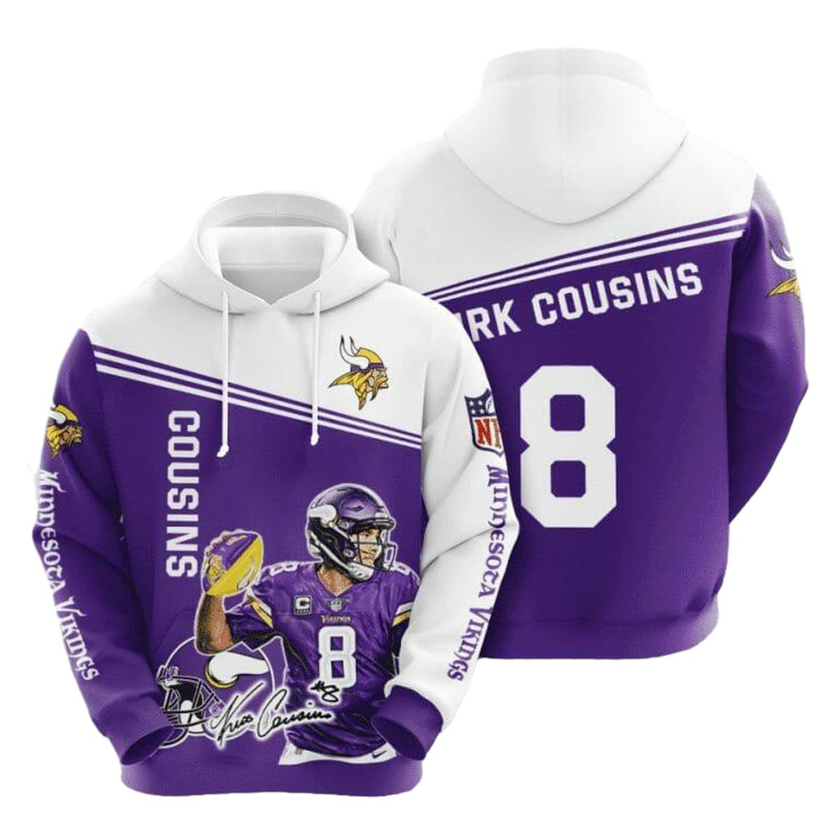 Minnesota Vikings Kirk Cousins 8 Signature Purple White AOP Hoodie