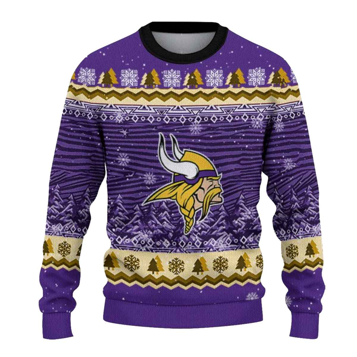 Minnesota Vikings Logo And Christmas Tree Pattern Purple AOP Sweatshirt