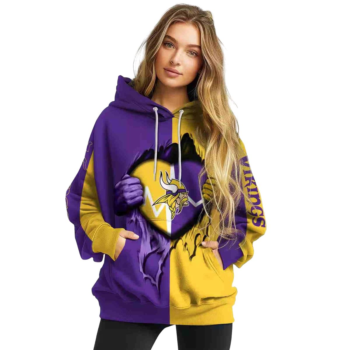 Show your love for the Minnesota Vikings with our exclusive heartbeat graphic hoodie, perfect for die-hard fans who want to showcase their team spirit in a stylish and cozy way. This all-over print hoodie is designed for both men and women, making it a versatile piece for casual outings or spirited game days. With its unique design and relaxed fit, it’s bound to become your go-to favorite in cooler weather.