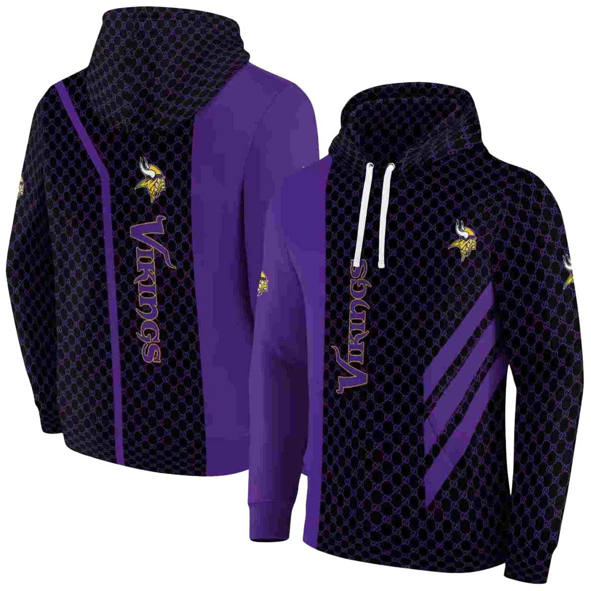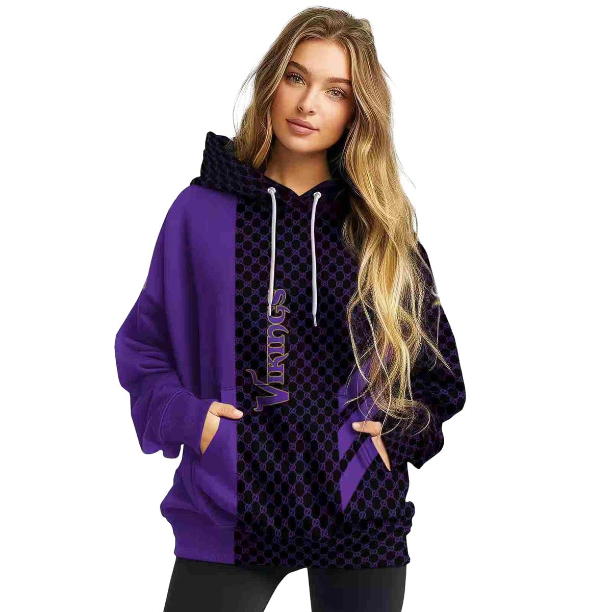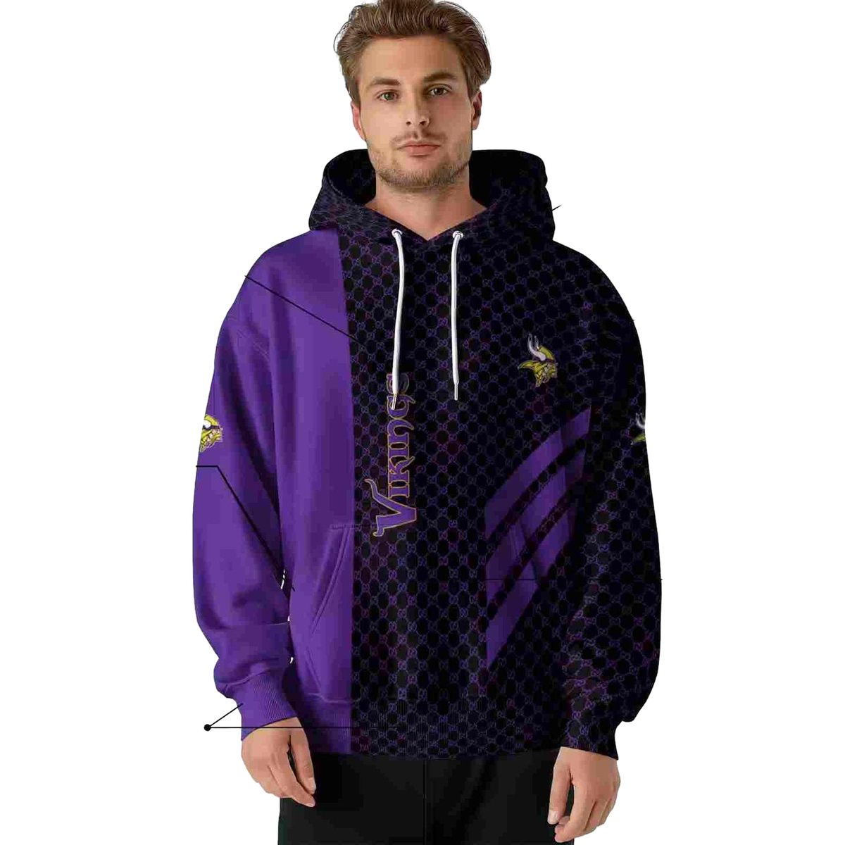 Show your team spirit with our Minnesota Vikings Logo Monogram Purple And Black Pattern AOP Hoodie, perfect for any devoted fan. This relaxed fit hoodie is designed for both men and women, making it an ideal choice for casual outings, game days, or cozy nights in. Its unique all-over print showcases your love for the Vikings while ensuring you stand out in style and comfort.