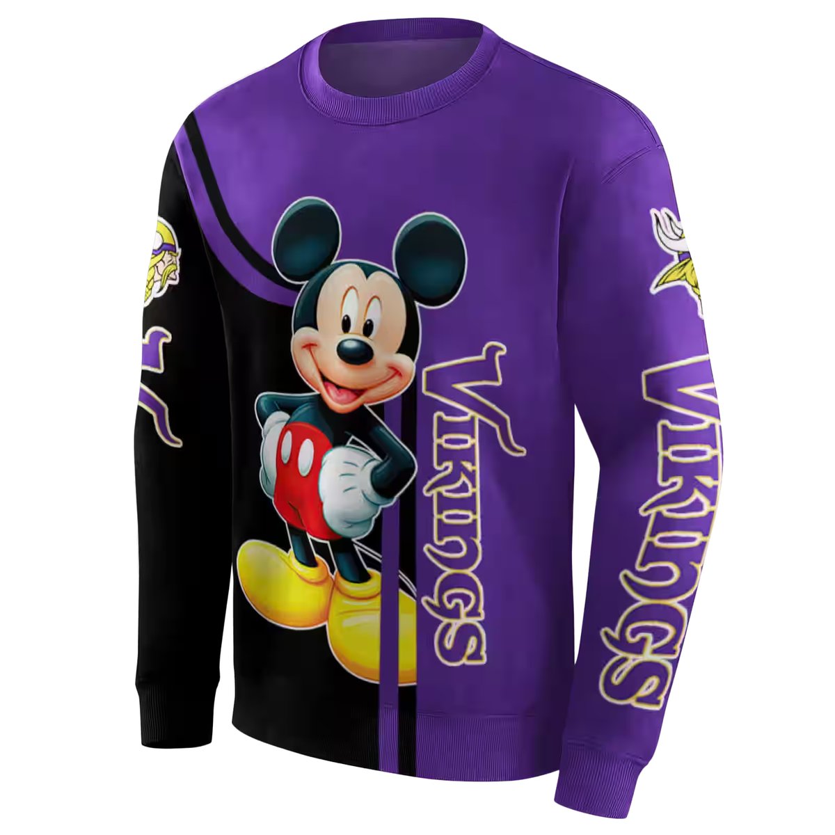Embrace your love for both the Minnesota Vikings and the magic of Disney with our Mickey Mouse Purple Black AOP Sweatshirt. Perfect for fans who want to showcase their team spirit in a unique and stylish way, this sweatshirt is ideal for casual outings, game days, or cozy nights at home. Its all-over print design brings a fun twist, making it a standout piece in any streetwear collection.