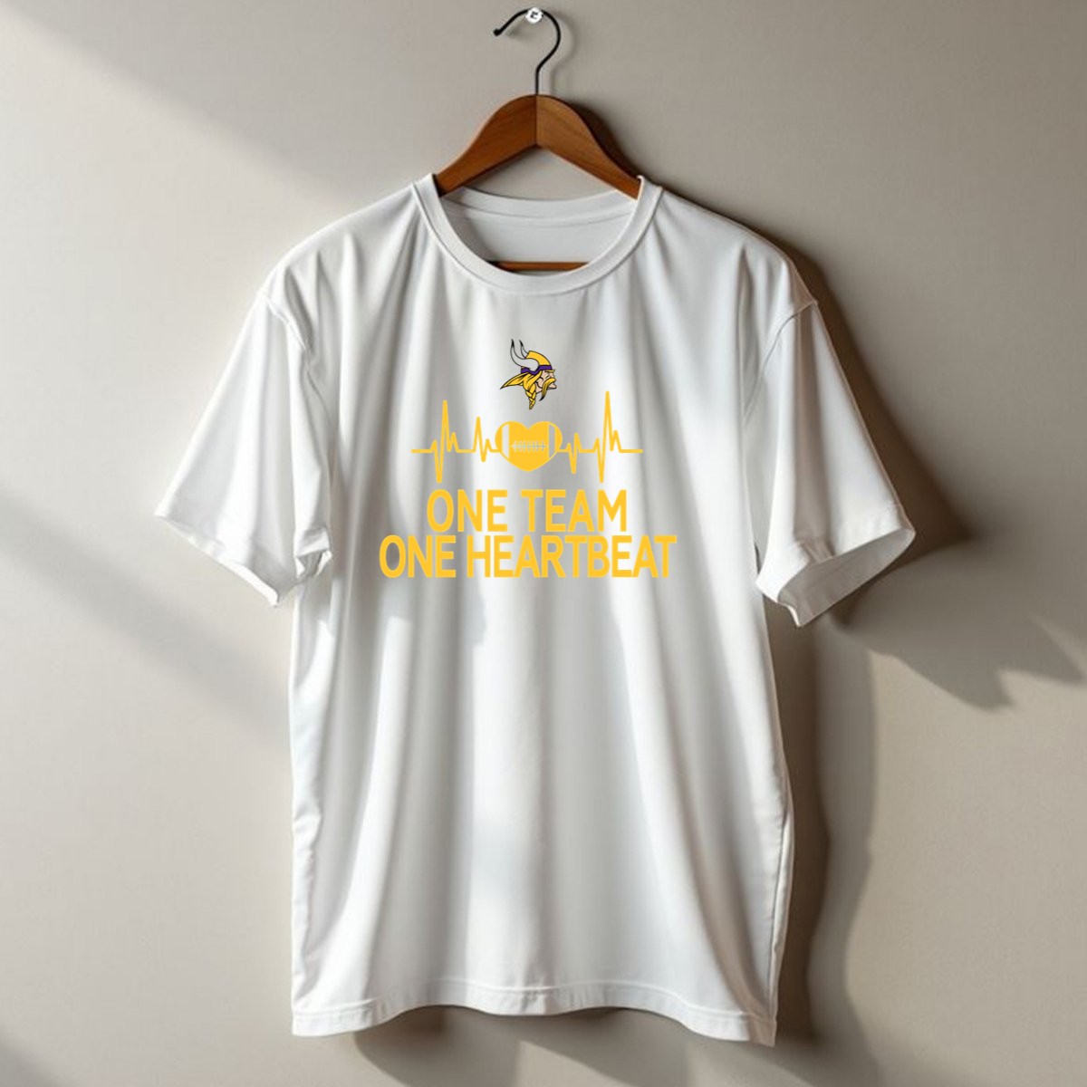Show your unwavering support for the Minnesota Vikings with our One Team One Heartbeat Football Heartbeat T-Shirt! Perfect for die-hard fans, this shirt embodies the spirit of camaraderie and passion for the game. Whether you’re cheering from the stands, hanging out with friends, or enjoying a themed event, this fan-made design printed in the USA is sure to make a statement and keep you comfortable all day long.