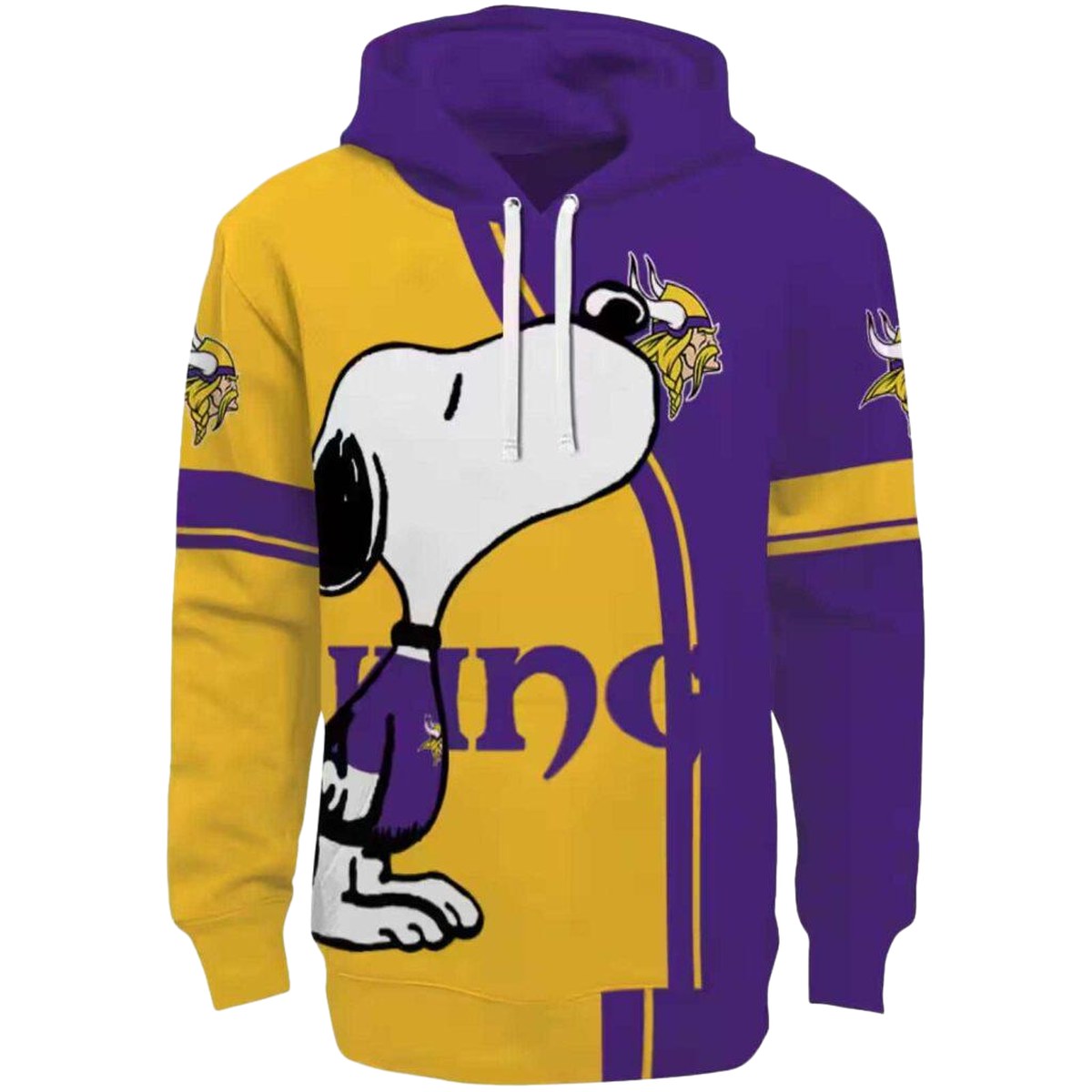 Embrace your playful side with our Minnesota Vikings Playful Snoopy Purple All-Over Print Hoodie, designed for fans who love to showcase their team spirit in a fun and stylish way. This cozy hoodie is perfect for daily wear or casual outdoor activities, making it an ideal companion for gatherings with friends or cheering on your favorite team during the winter season. Its unique all-over graphic print featuring Snoopy adds a whimsical touch that sets it apart from ordinary hoodies.