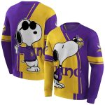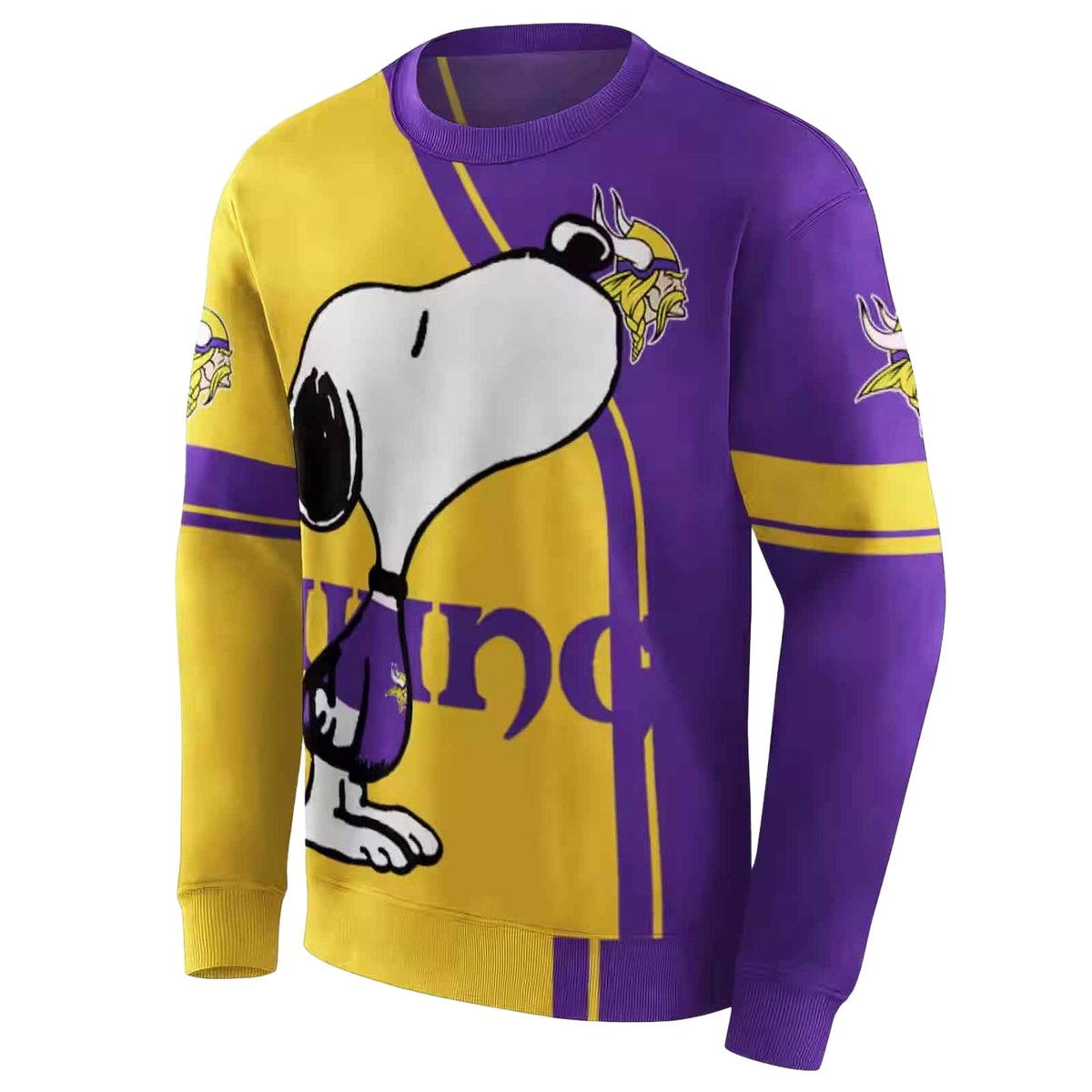 Embrace your playful side with the Minnesota Vikings Playful Snoopy Purple AOP Sweatshirt, a vibrant addition to any streetwear wardrobe. Perfect for fans of the iconic team and the beloved character, this sweatshirt is ideal for casual outings, lounging at home, or even hitting the gym. Its unique all-over print sets you apart while offering a cozy, modern vibe that complements your active lifestyle.