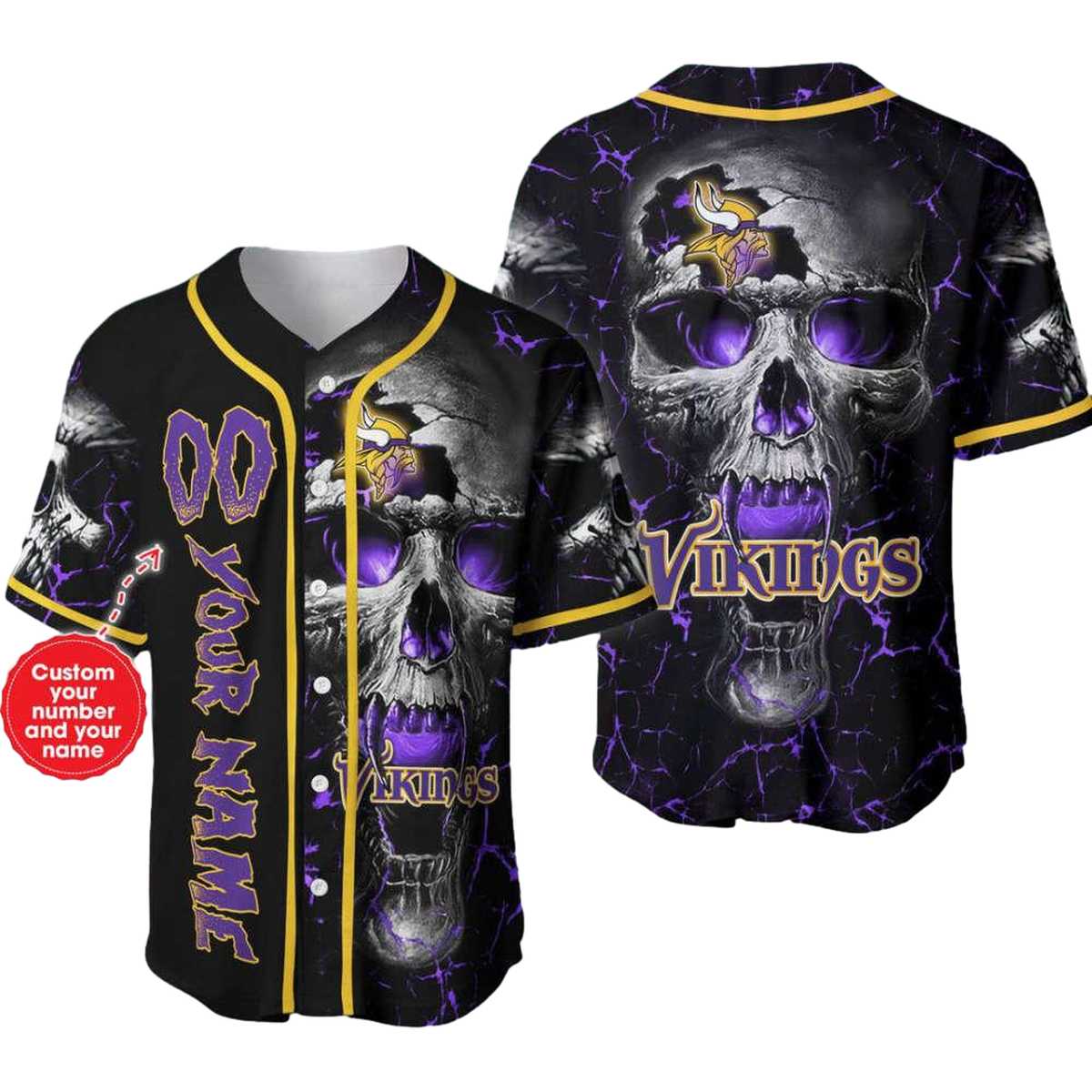 Elevate your game day look with our Minnesota Vikings Purple Smoke Skull Baseball Jersey, designed for both athletes and fans who want to showcase their team spirit in style. Perfect for sporting events, casual outings, or as part of a group uniform, this jersey combines functionality with a bold statement that stands out on and off the field.