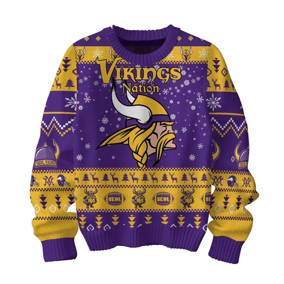 Minnesota Vikings Skol Viking Nation Christmas Ugly Sweater