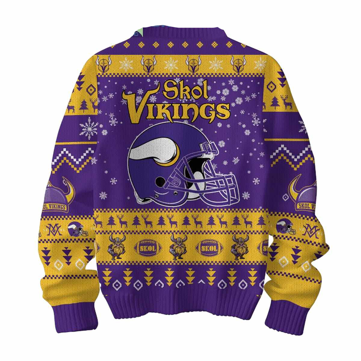 Get ready to show off your team spirit this holiday season with our Minnesota Vikings Skol Viking Nation Christmas Ugly Sweater! Perfect for die-hard fans and anyone looking to add a dash of festive fun to their winter wardrobe, this sweater is ideal for holiday parties, game day gatherings, or cozy nights in. With its playful design and cozy fit, you’ll be the life of the party while keeping warm and stylish!