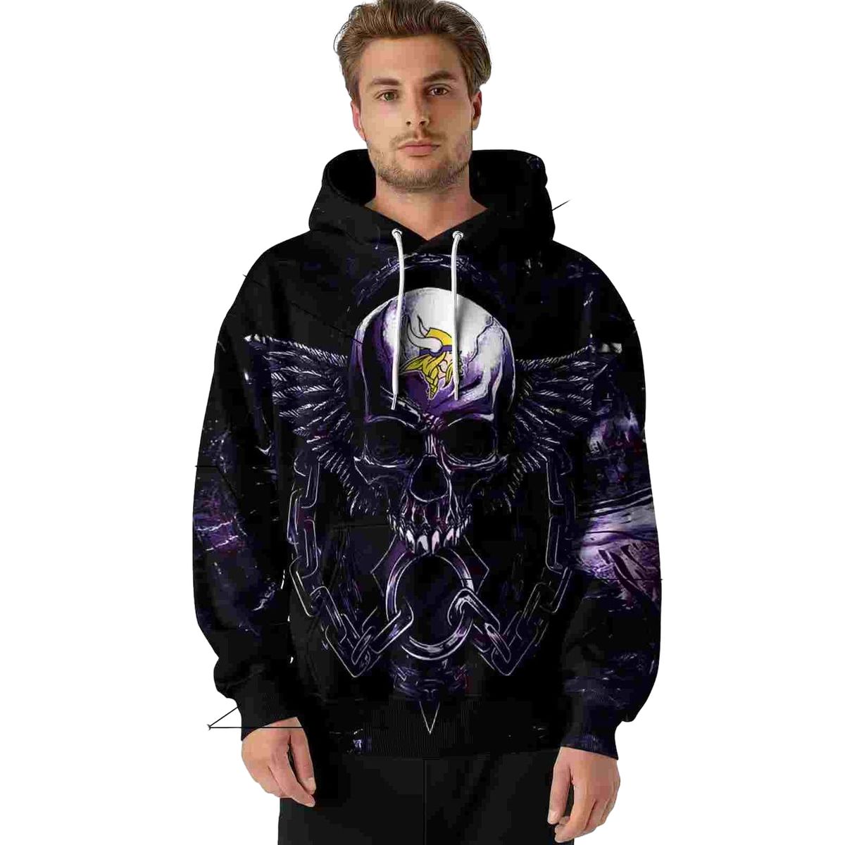 Unleash your inner fan with our Minnesota Vikings Skull Angel Artwork Purple Black All-Over Print Hoodie. Perfect for both men and women, this unique piece is designed for those who want to showcase their team spirit while staying cozy during casual outings or outdoor adventures in the cooler months. With a striking graphic print that stands out, this hoodie combines style and comfort seamlessly.
