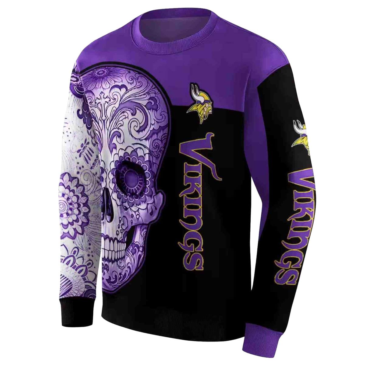 Unleash your fierce style with our Minnesota Vikings Sugar Skull Purple Black AOP Sweatshirt, designed for the bold and the spirited. Perfect for fans who want to showcase their love for the Vikings while staying cozy, this sweatshirt is an ideal companion for game days, casual outings, or lounging at home. Its unique all-over print adds a modern edge, making it a standout piece in any streetwear collection.