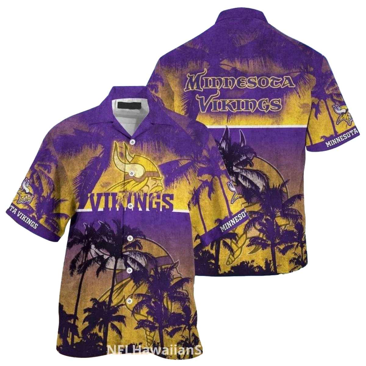 Embrace the tropical vibes with our Minnesota Vikings Sunset Palm Trees Vintage Hawaiian Shirt, designed for fans who love to showcase their team spirit in style. Perfect for summer outings, beach trips, or casual gatherings, this shirt combines vibrant graphic prints with a laid-back Hawaiian flair, making it a unique addition to any wardrobe.