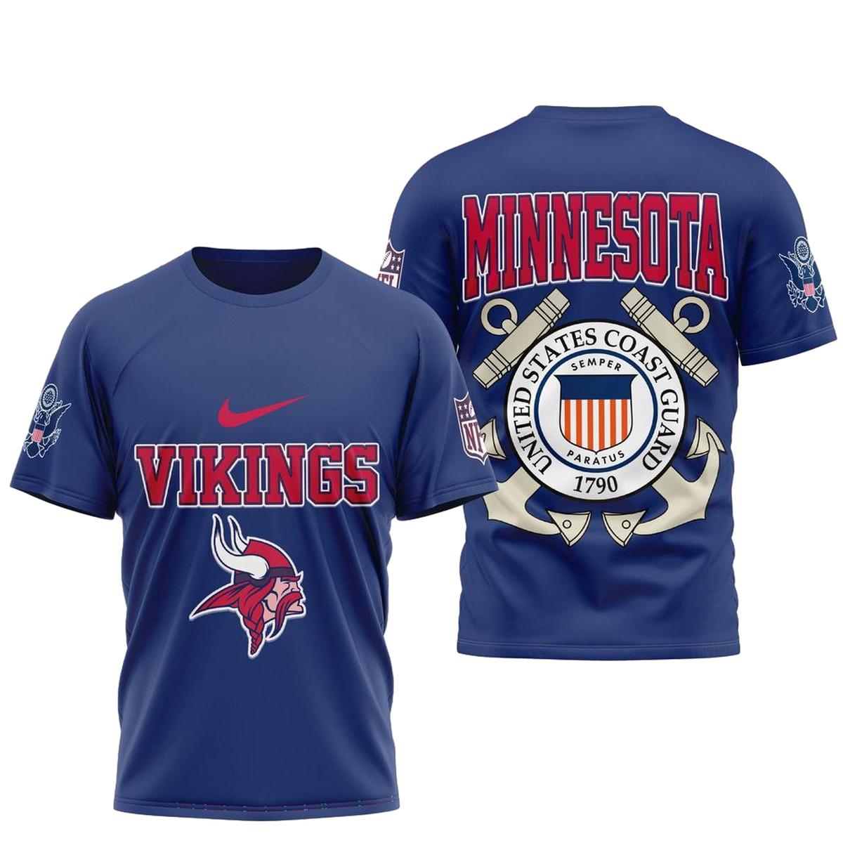 Show your pride with the Minnesota Vikings United States Coast Guard all-over printed T-shirt! Perfect for fans who want to blend their love for sports with a touch of military appreciation, this shirt is ideal for casual outings, game days, or simply making a bold fashion statement. With its striking graphic design, it’s sure to turn heads wherever you go.