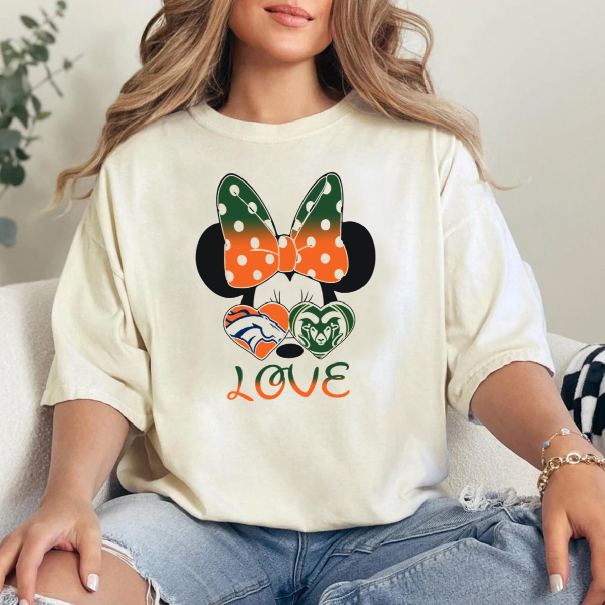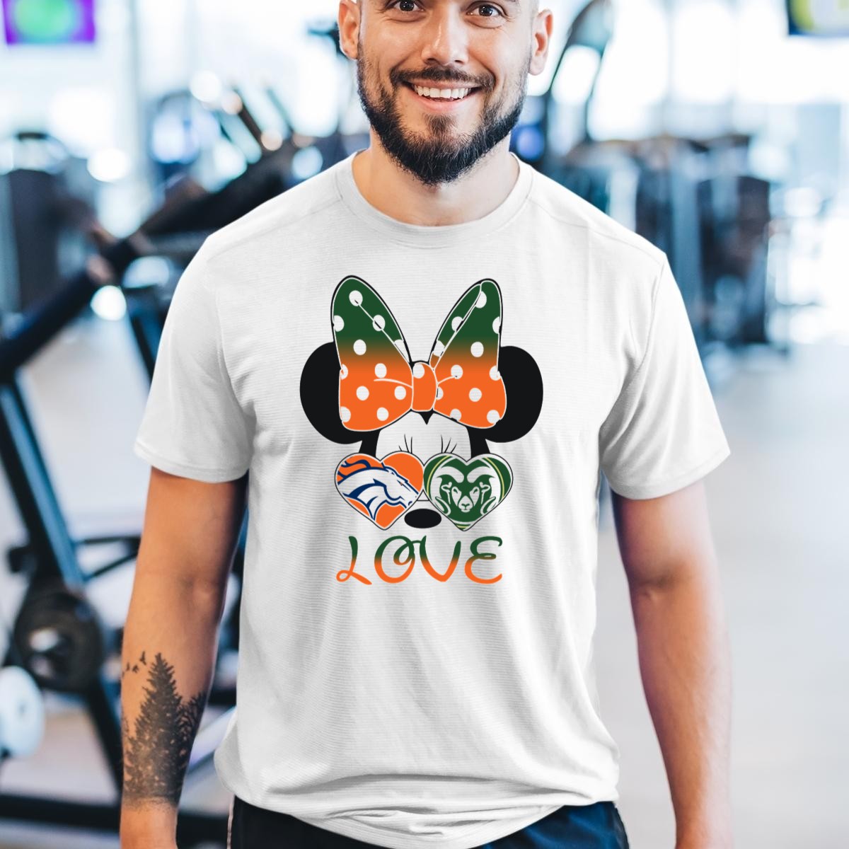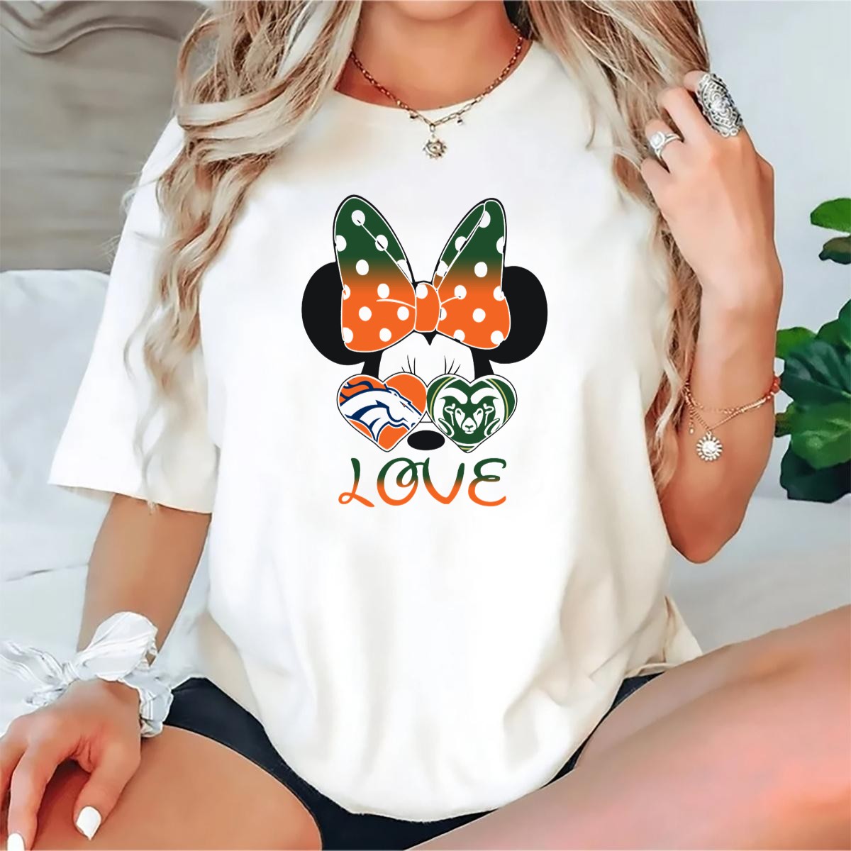 Show off your team spirit with our fan-made Minnie Love Denver Broncos and Colorado State Rams T-Shirt! Perfect for both die-hard fans and casual wearers, this shirt combines comfort and style with a unique design that celebrates two beloved teams. Whether you’re cheering from the stands, hosting a themed event, or enjoying a casual day out, this classic fit tee will keep you looking great while showcasing your love for football in the heart of Colorado.