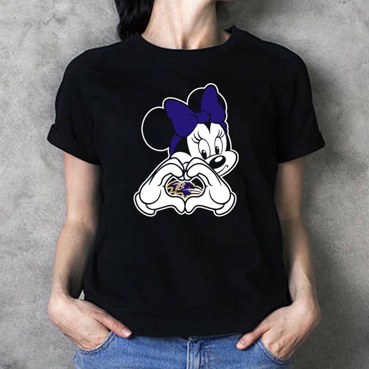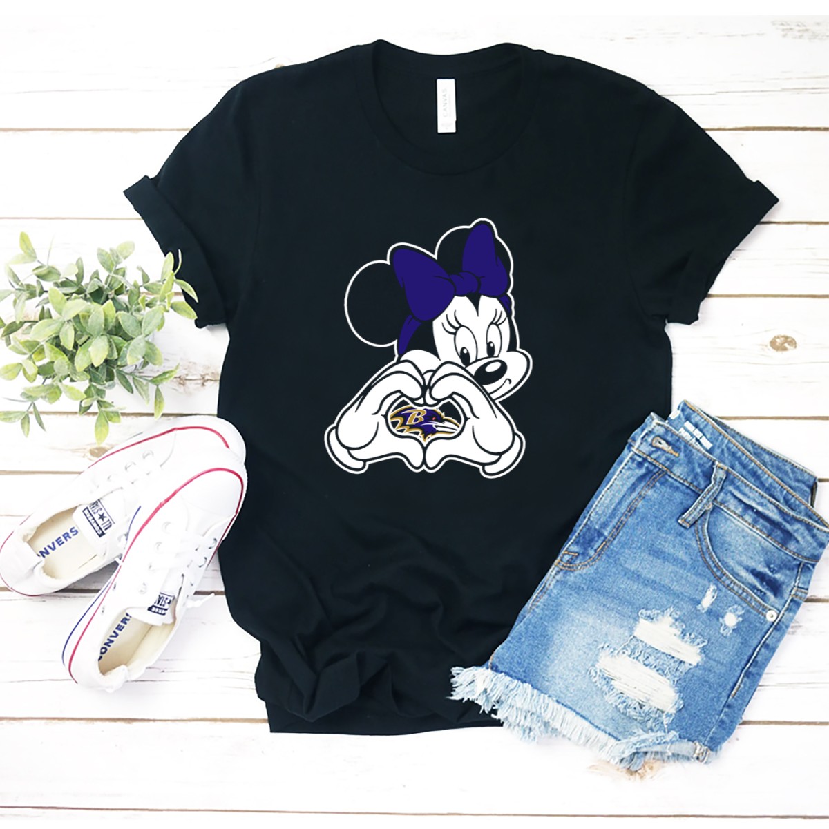 Minnie Mouse Heart Hands Baltimore Ravens T-Shirt